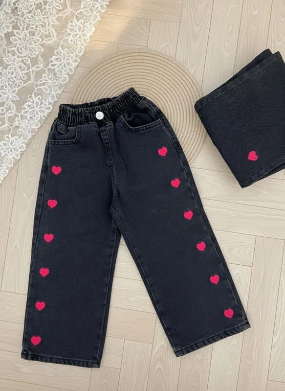 شلوار بگ مشکی قلب قلبی ترک 3-10سال کد 6365