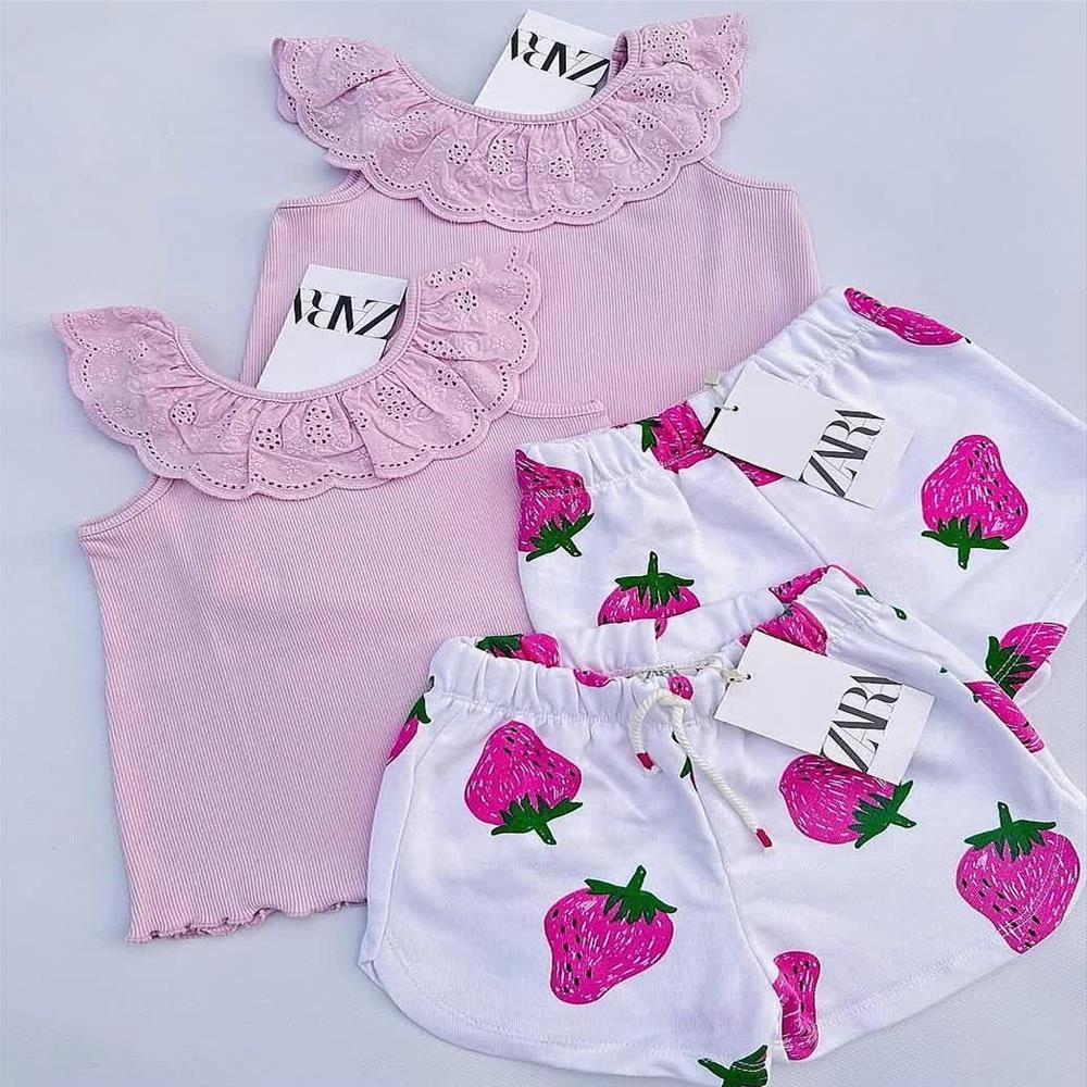 ست دوتیکه تاپ خامه دوزی و شلوارک توت فر نگی ترک کد 121212
