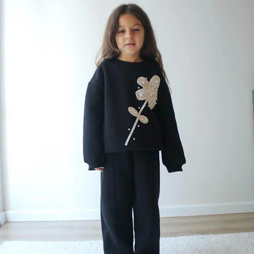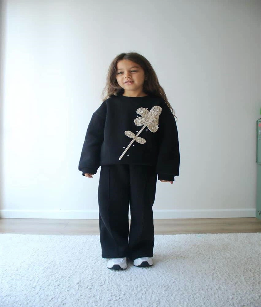 ست دو تیکه کرکدار دورس شلوار گل برجسته مشکی ترک کد 18441