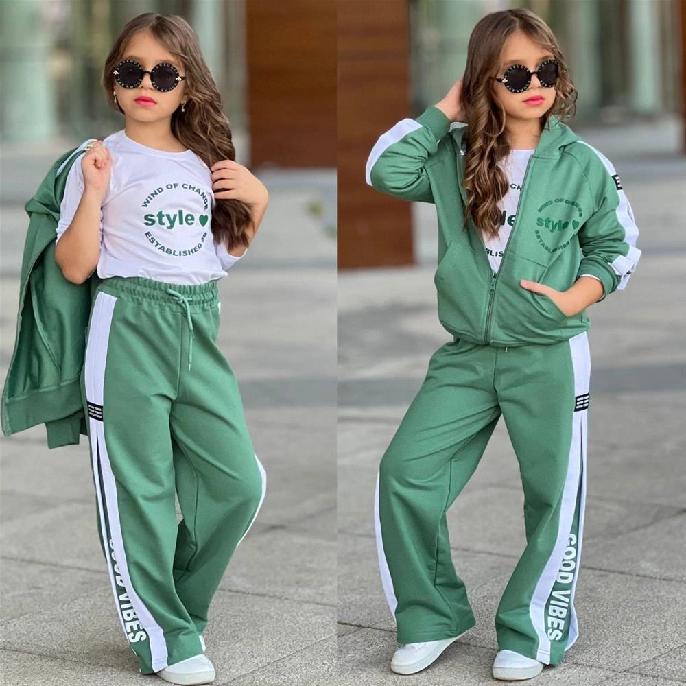 سه تیکه کلاهدار سویشرت شلوار و بلوز نخ پنبه ترک 4-15سال کد 18560