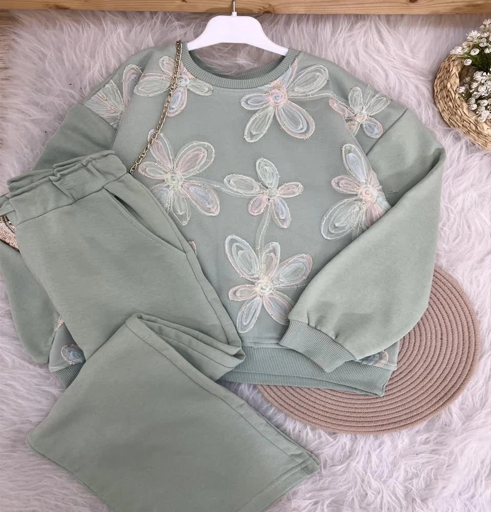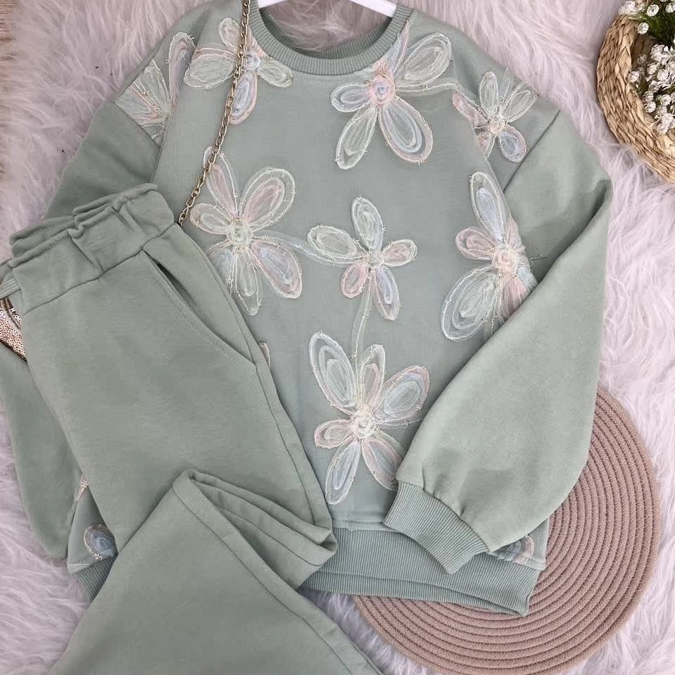 ست دو تیکه سه نخ دورس شلوار گل برجسته4-12سال ترک کد 18626