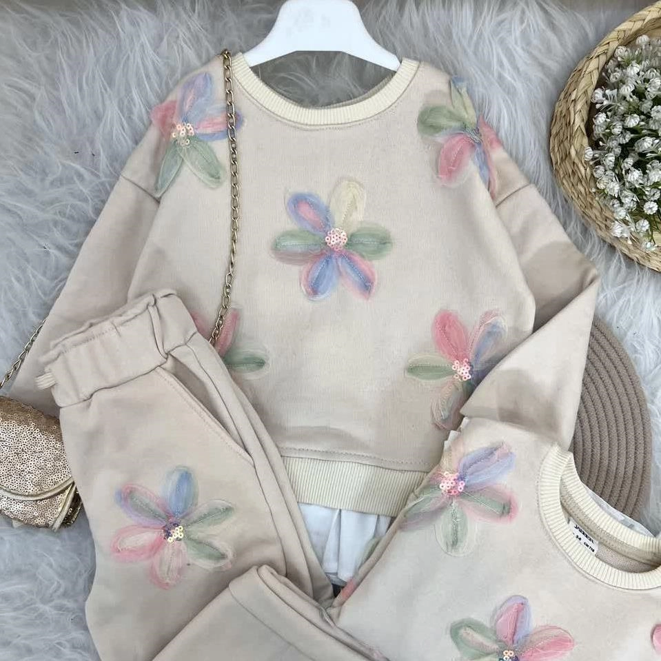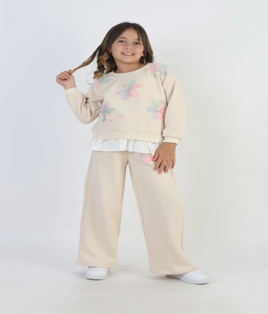 ست دو تیکه دورس شلوار سه نخ گل برجسته 3-12سال ترک کد 18632