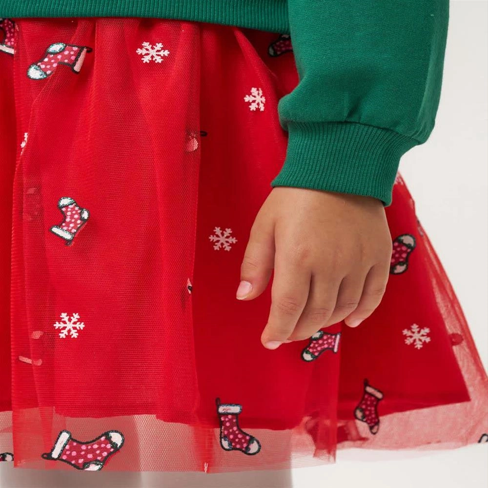 دوتیکه پیراهن و تل کریسمسی ترک 2-5سال کد 18724