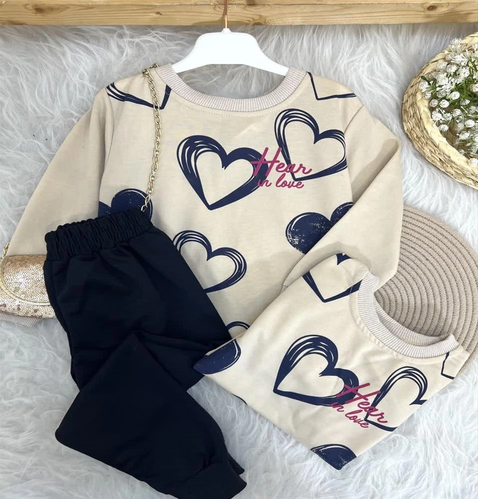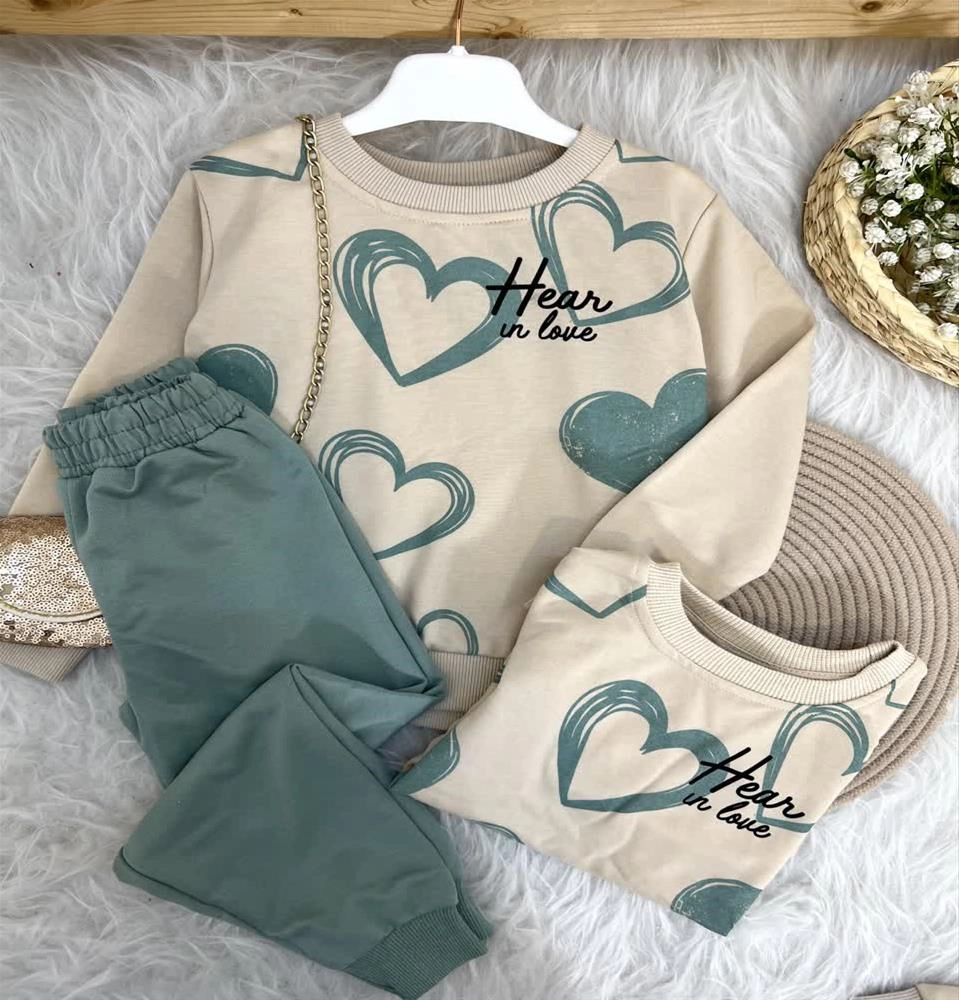 ست دوتیکه دو نخ دورس شلوار طرح قلب ترک کد 18820