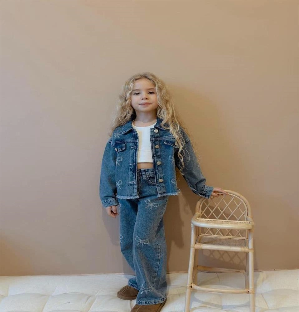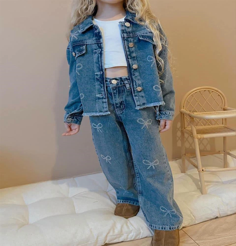 ست دو تیکه کت و شلوار جین پاپیون و پروانه ترک کد 18826