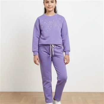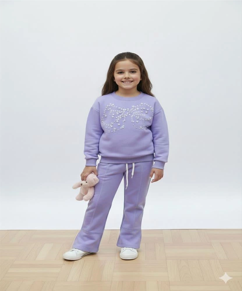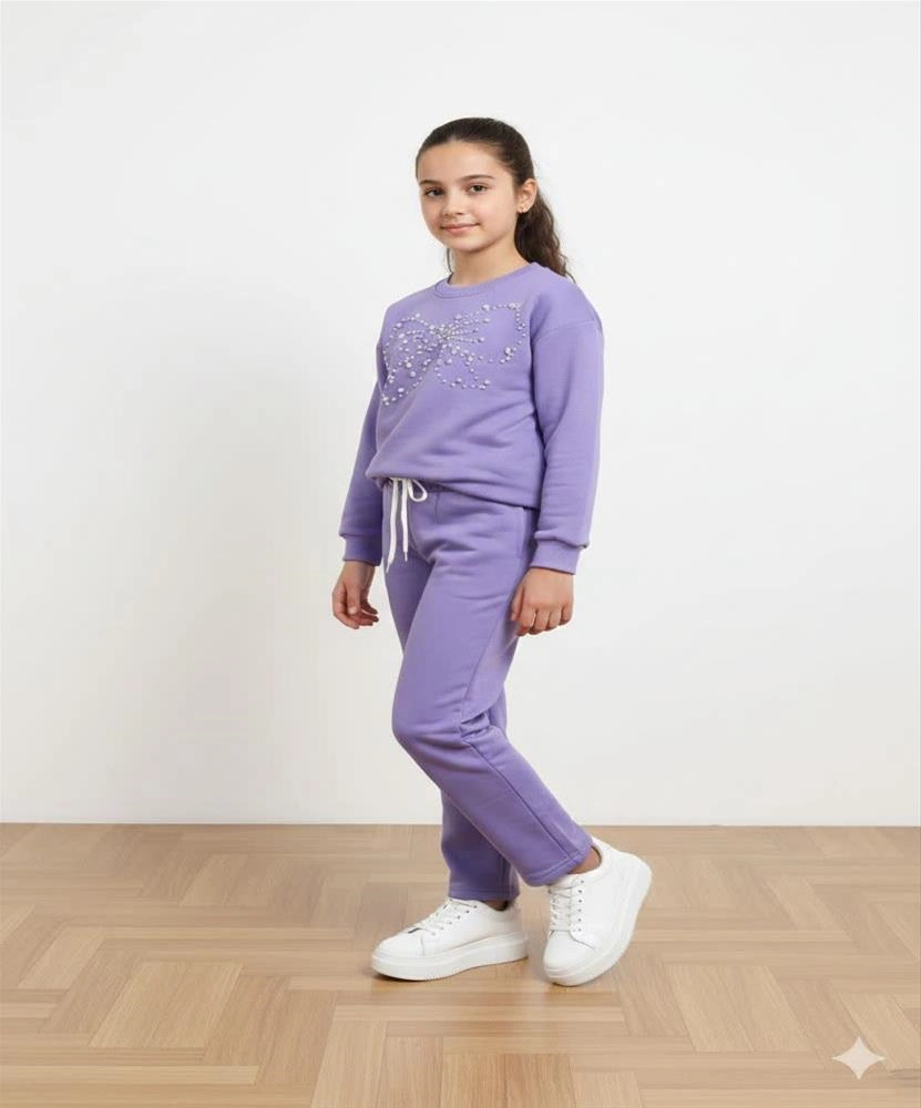 ست دو تیکه دورس شلوار پاپیون مرواریدی یاسی ترک کد 18842