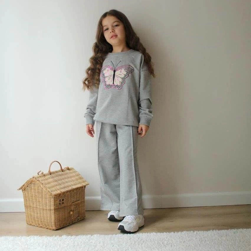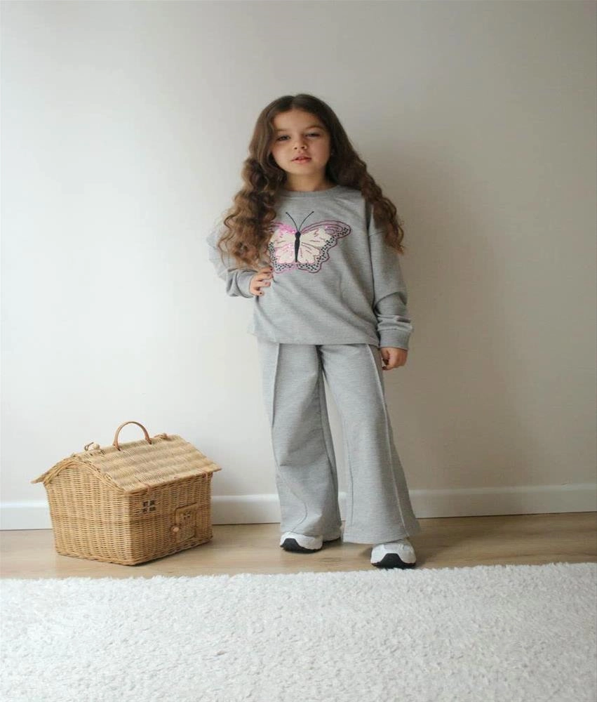 ست دوتیکه دورس شلوار دو نخ پروانه طوسی ترک کد 18853