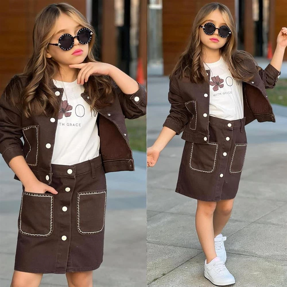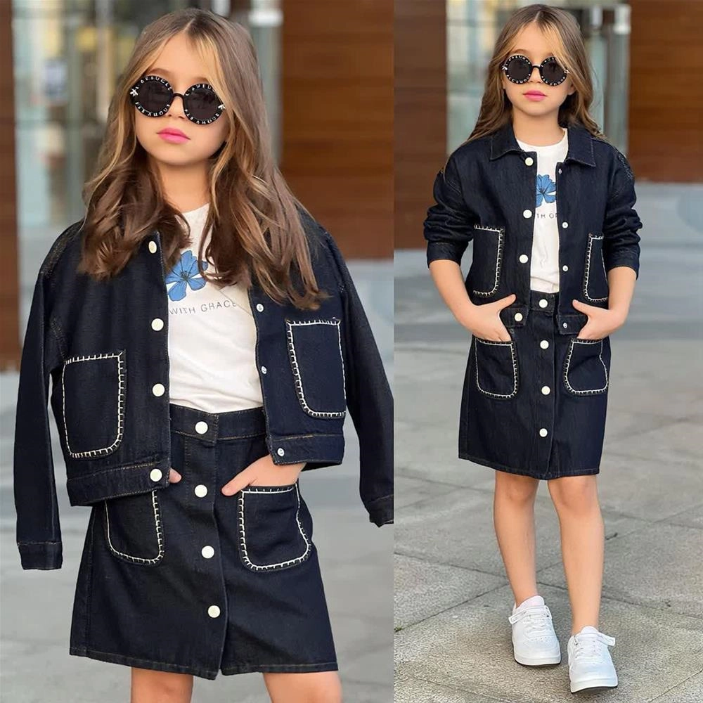 ست سه تیکه جین مجلسی کت و دامن و تیشرت ترک کد 18874