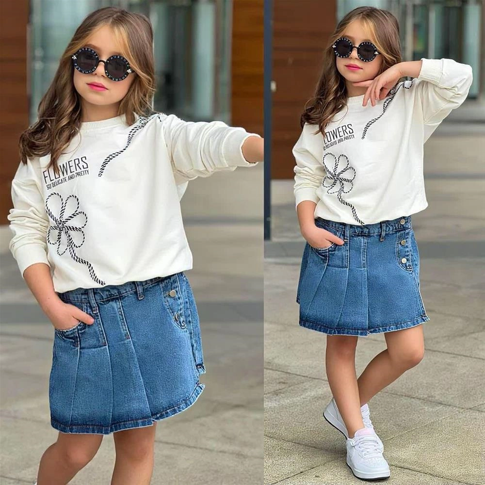 دوتیکه مجلسی دورس و دامن شلوارکی جین ترک کد 18877