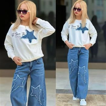 دوتیکه بلوز و شلوار جین تیکه دوزی ترک 5-14سال ترک کد 18887