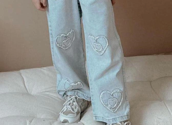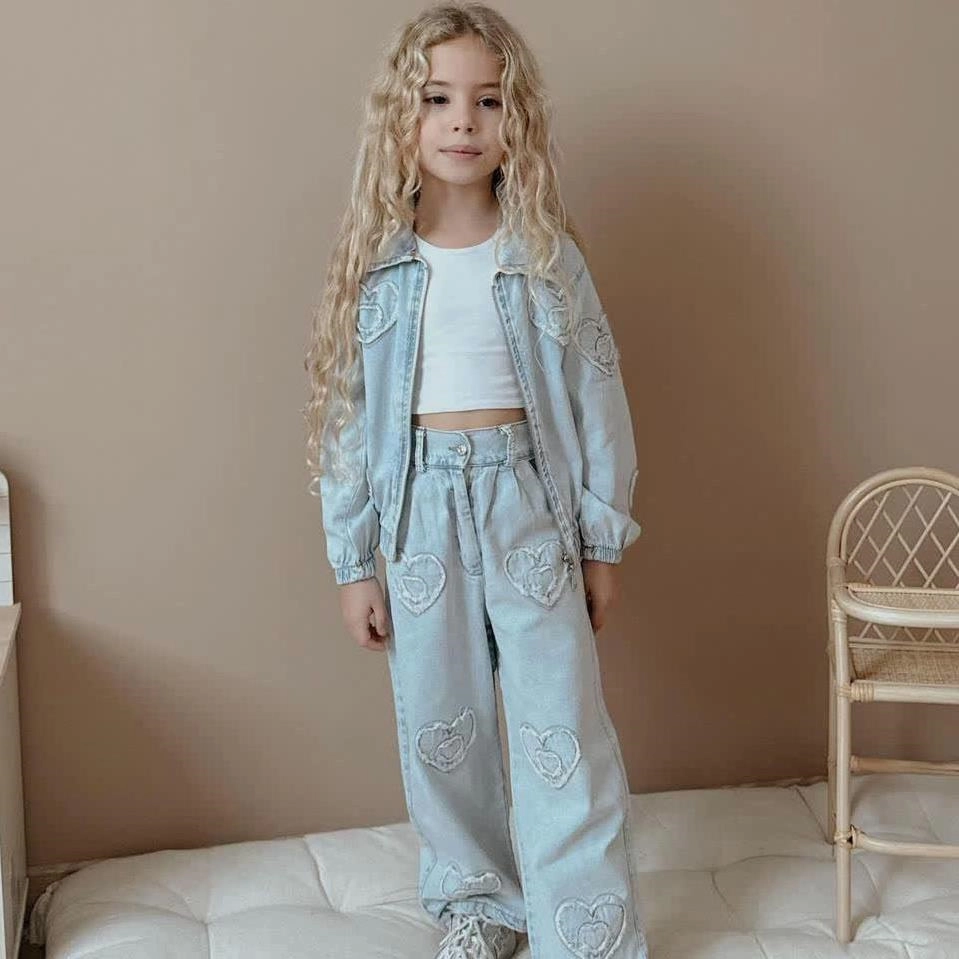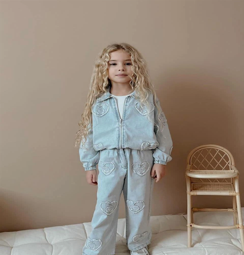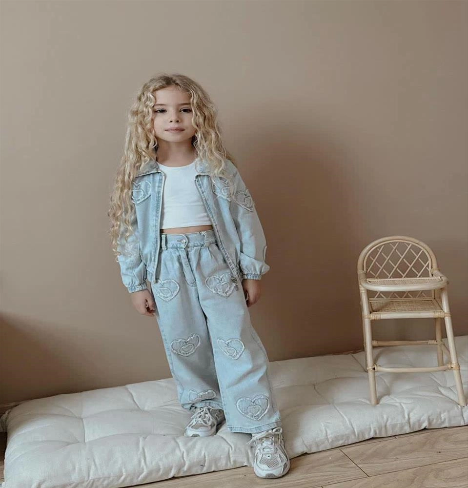 دوتیکه کت جین و شلوار جین قلب برجسته ترک کد 18893