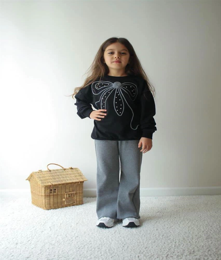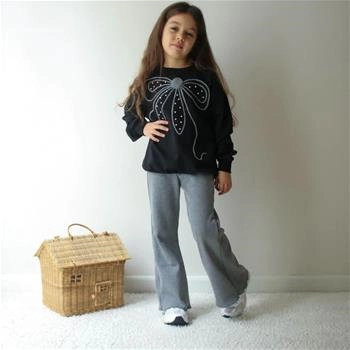 ست دوتیکه دورس شلوار دو نخ فلاور نگین دار پوم دار ترک کد 18900