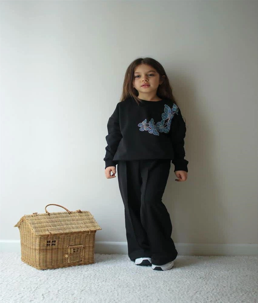 ست دوتیکه دورس شلوار نگین دار پروانه ابی ترک کد 18908