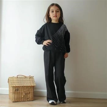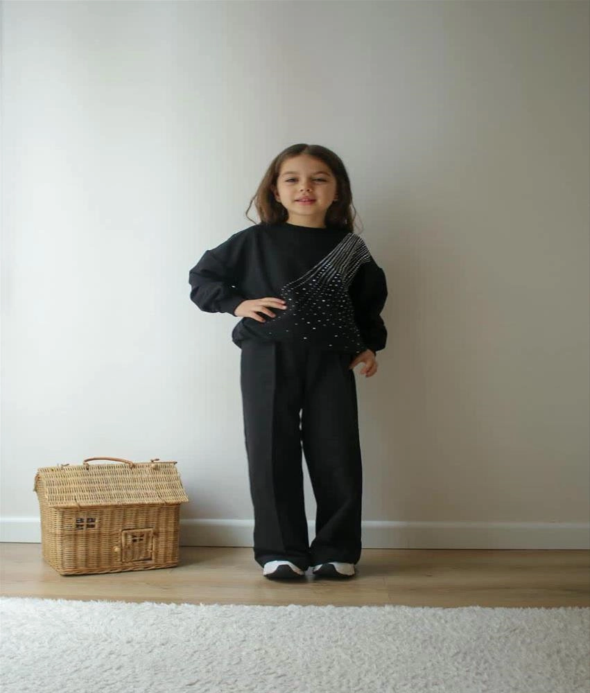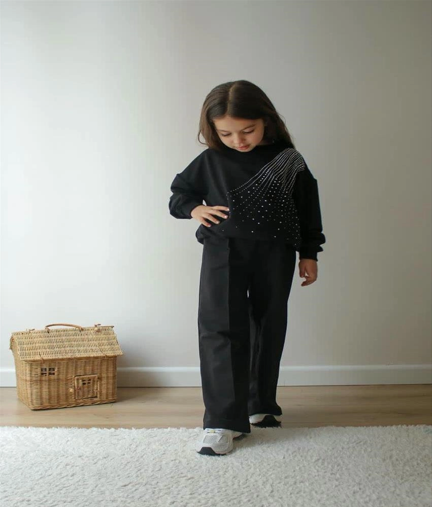 ست دو تیکه دورس شلوار دونخ نگین دار مشکی ترک کد 18916