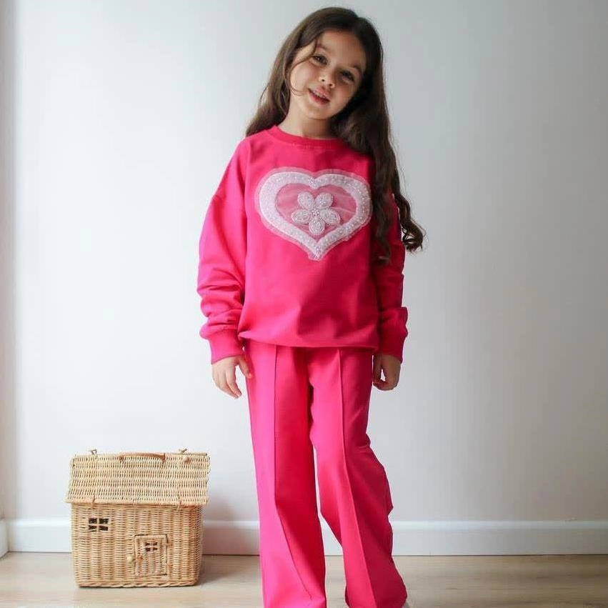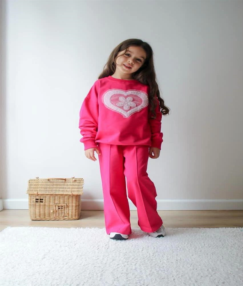 ست دوتیکه دورس شلوار دونخ قلب برجسته نگین دار ترک کد 18921