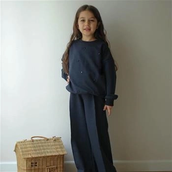 ست دوتیکه دورس شلوار دو نخ نگین دار سرمه ای ترک کد 18932