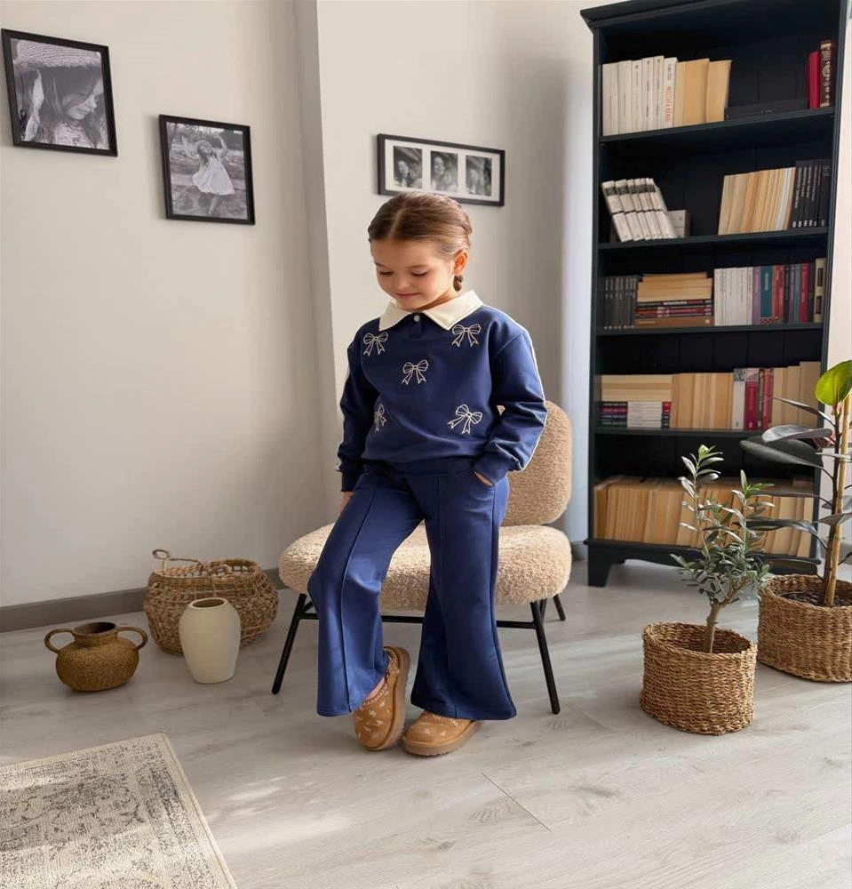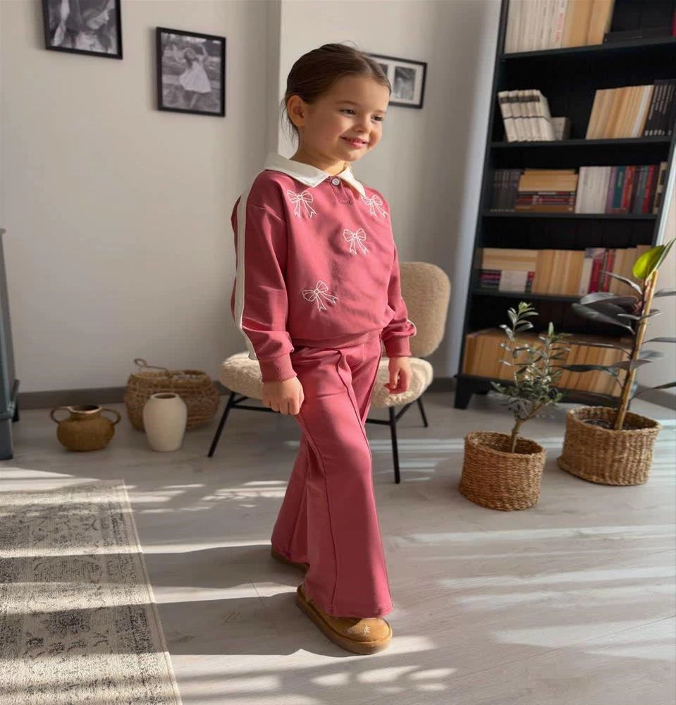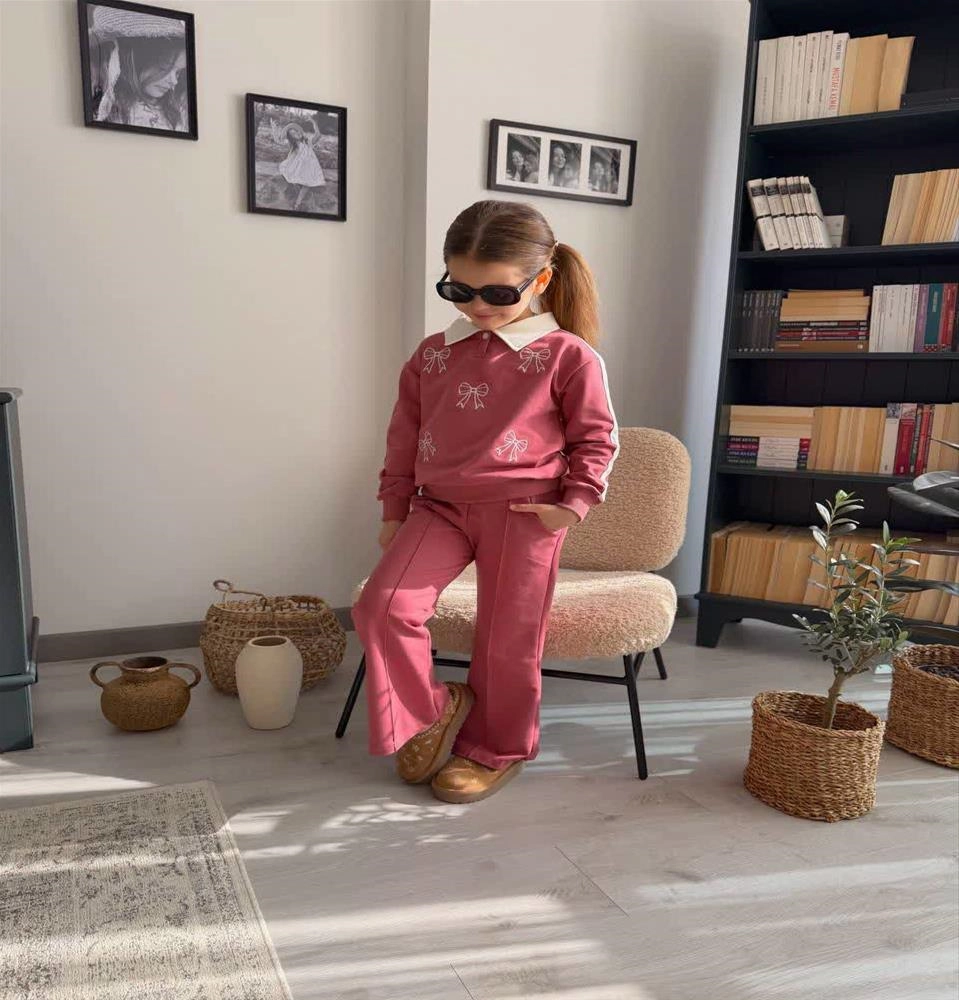 ست دوتیکه پاپیونی یقه خرگوشی ترک 3-12سال کد 18941
