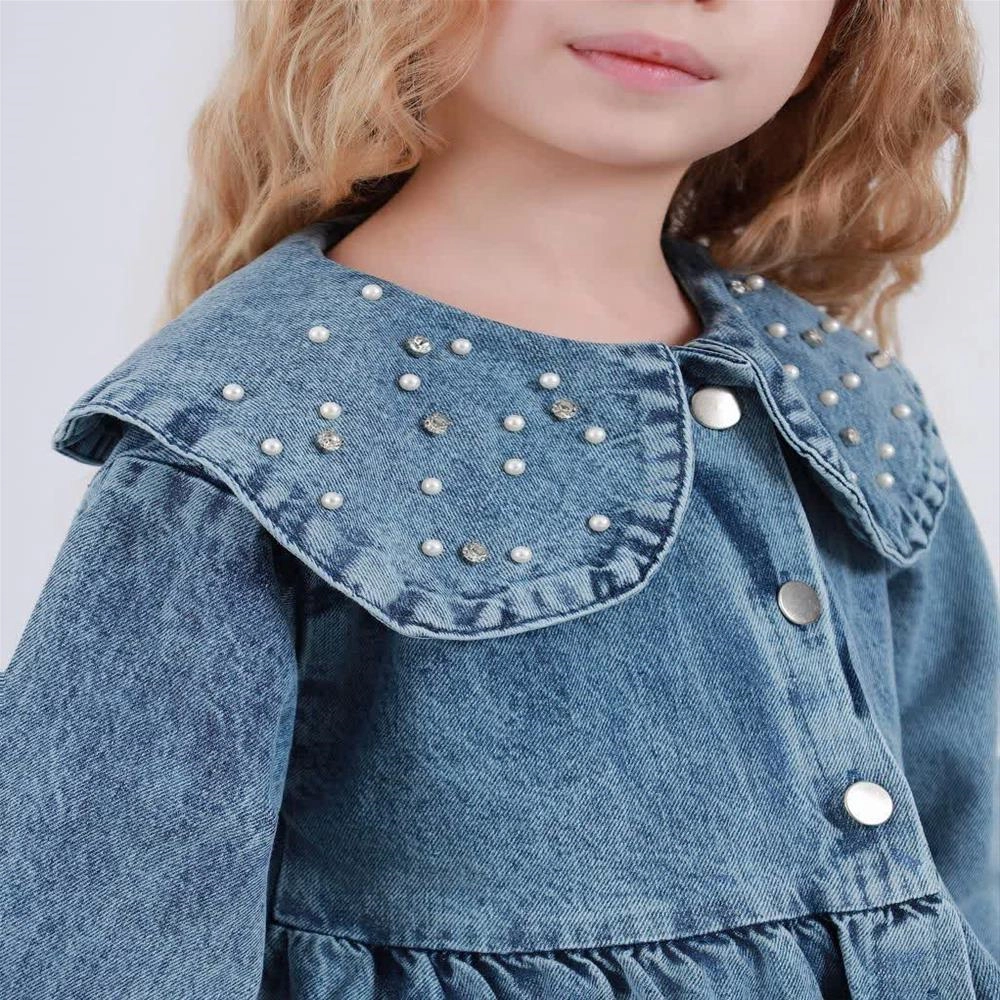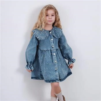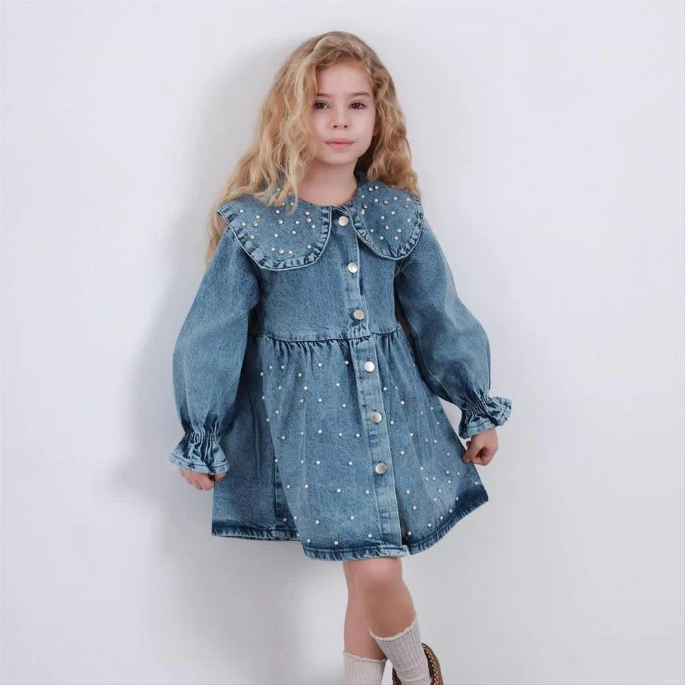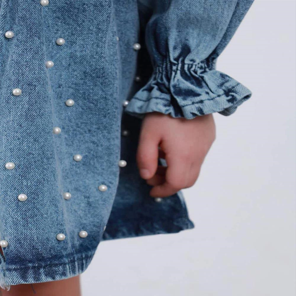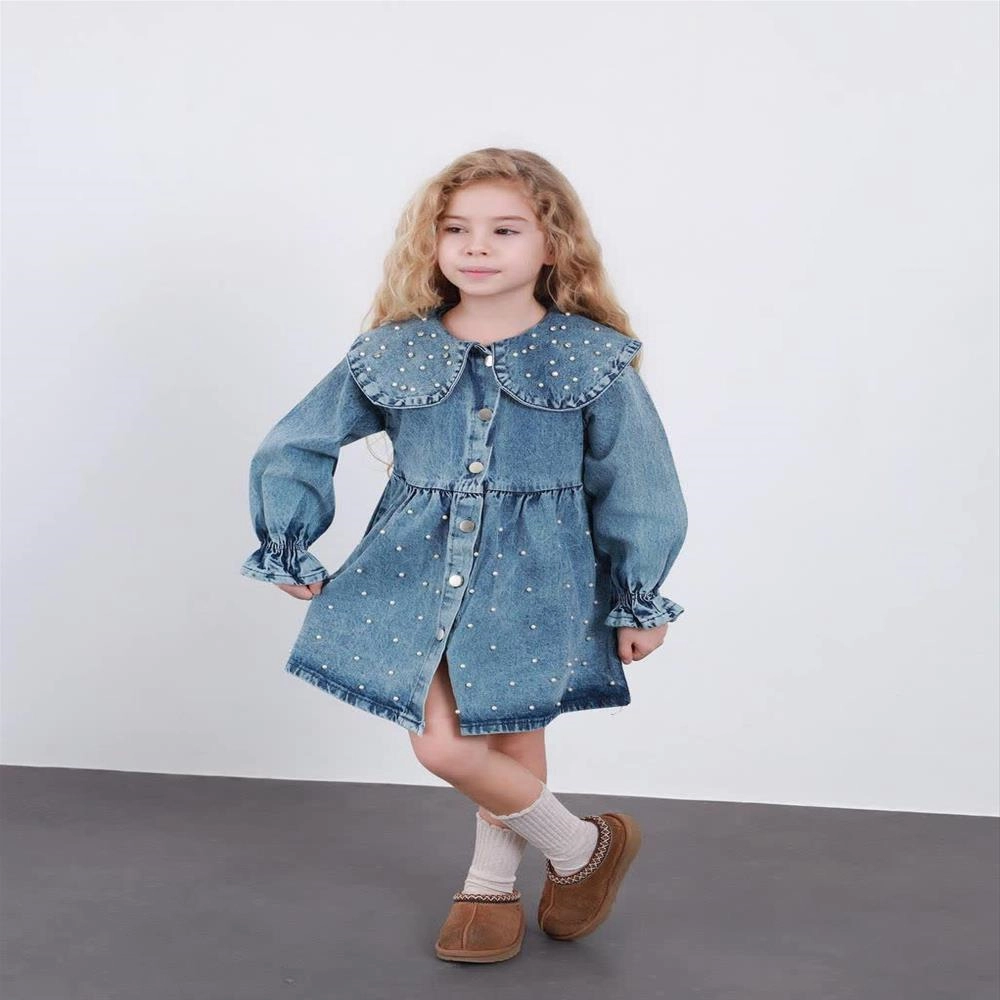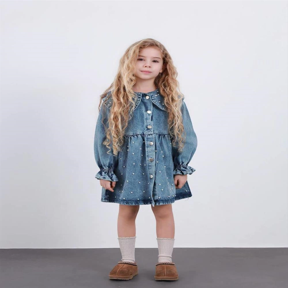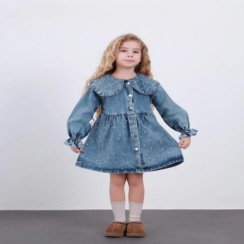پیراهن جین دکمه دار مرواریدی ترک 4-12سال کد 18979