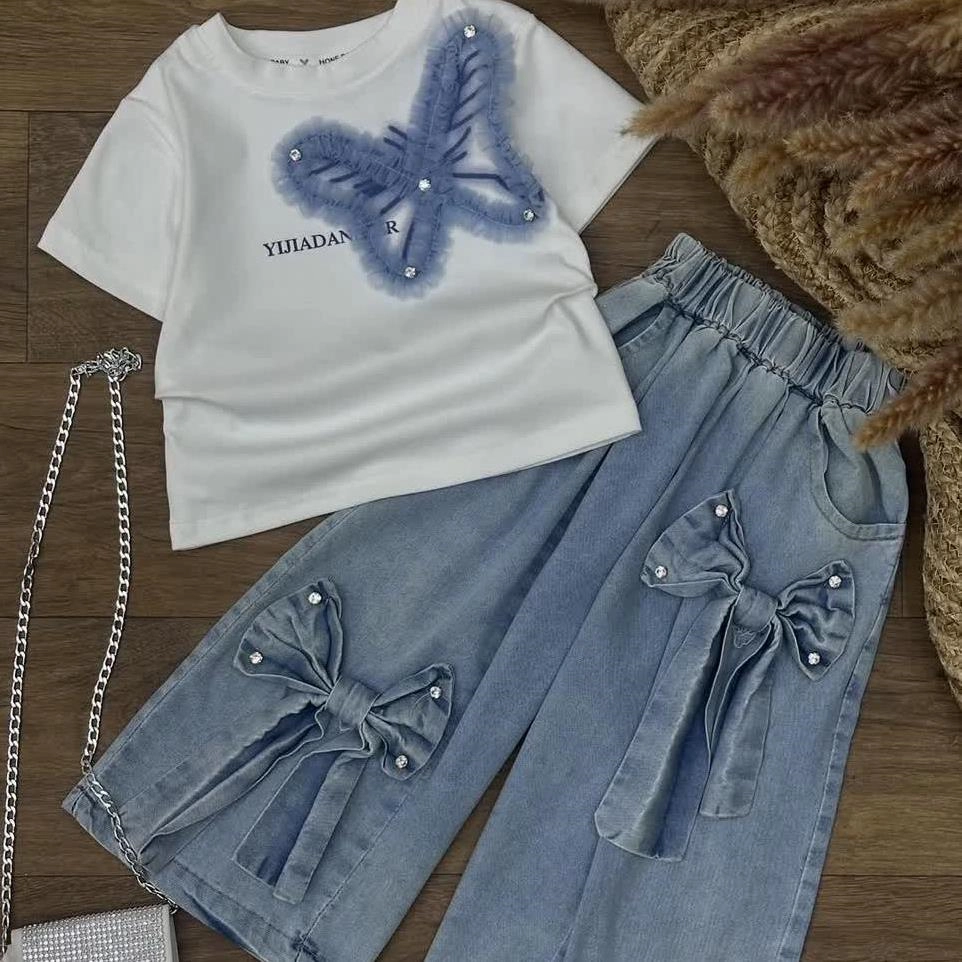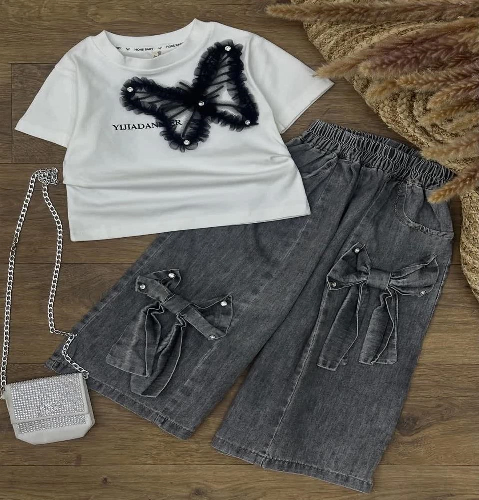 ست دوتیکه تیشرت و شلوار جین پروانه ترک کد 18988