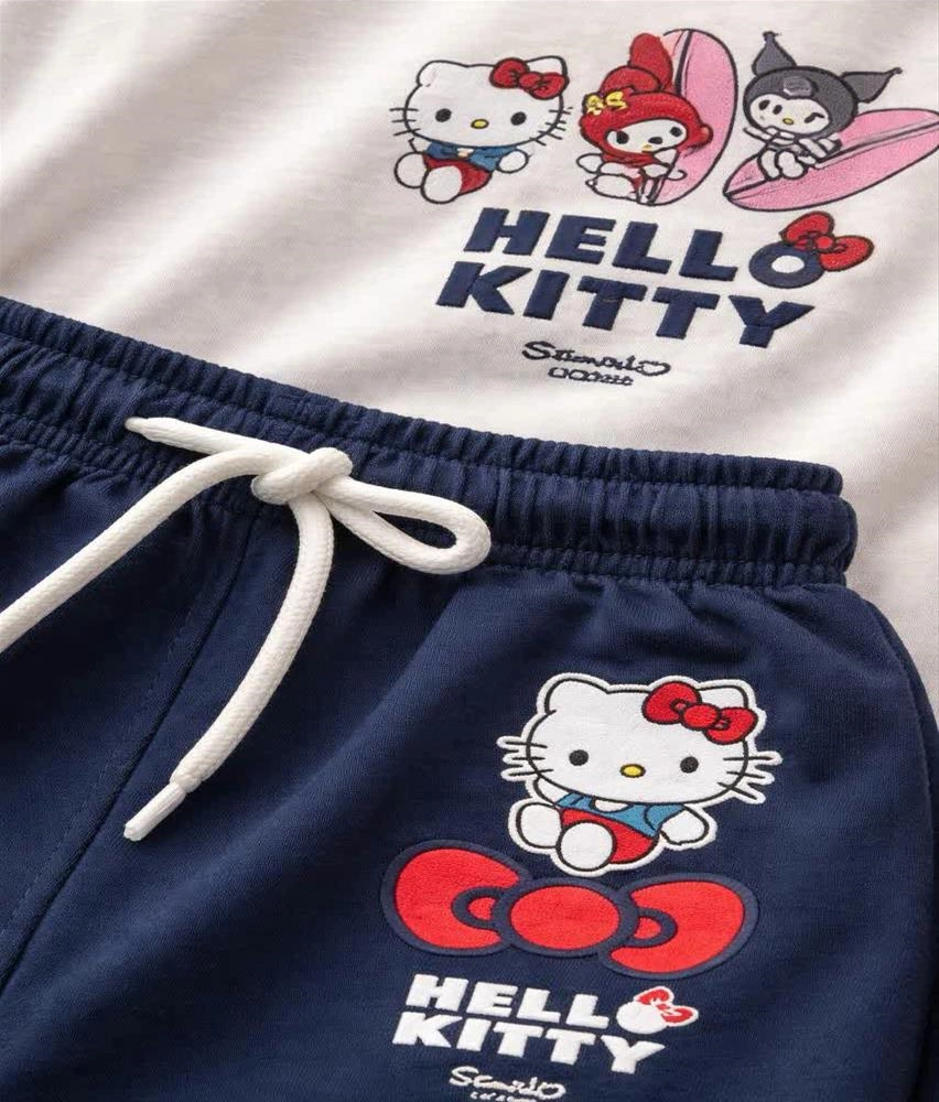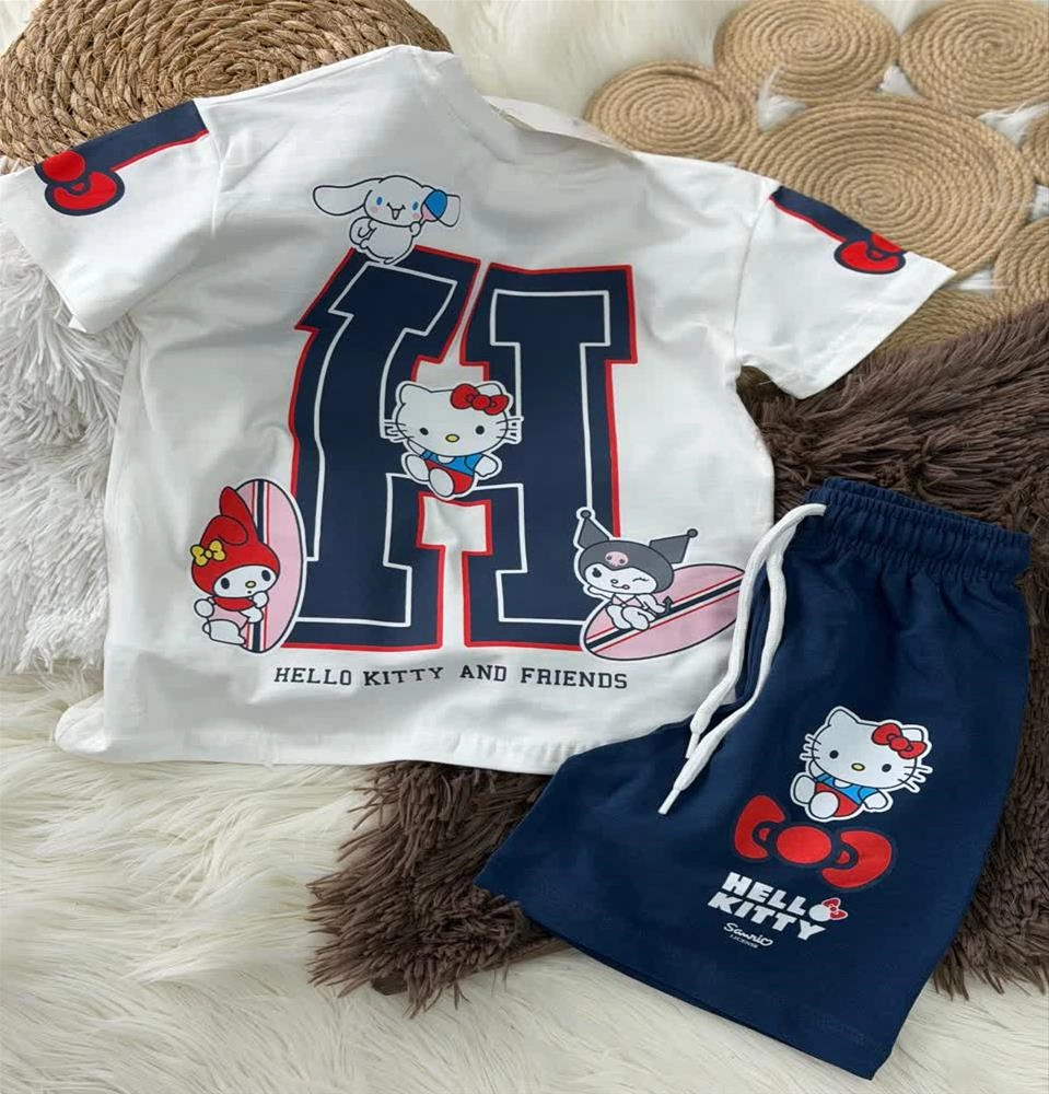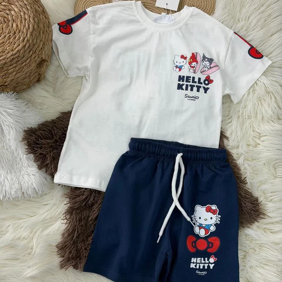 ست دوتیکه تیشرت شلوارک هلوکیتی Hپشت و رو طرحدار ترک کد 18996