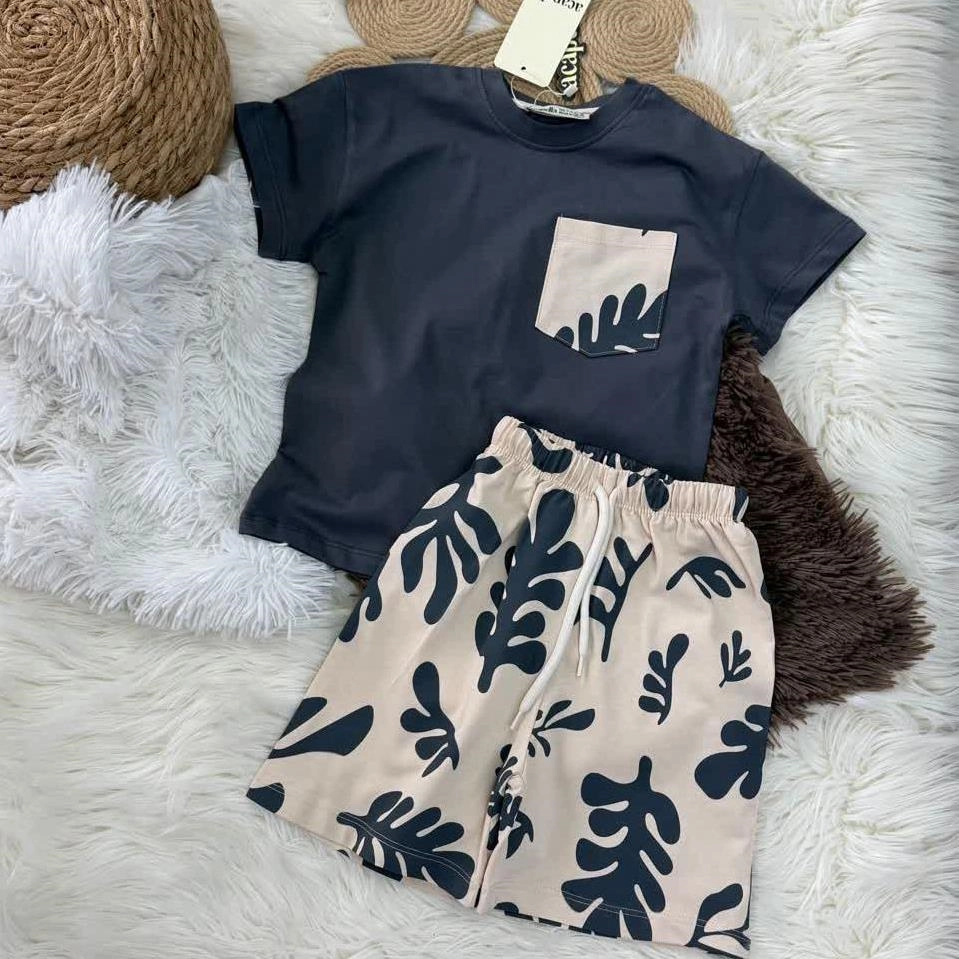 ست دوتیکه تیشرت شلوارک هاوایی ترک کد 18998