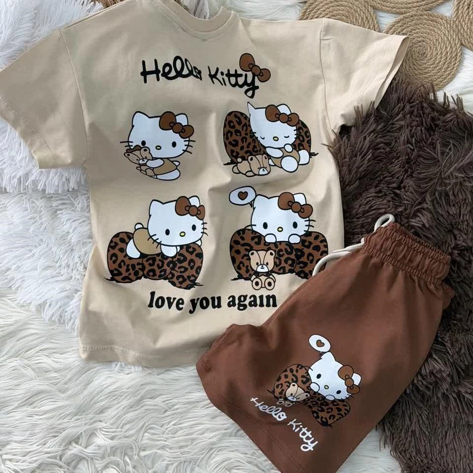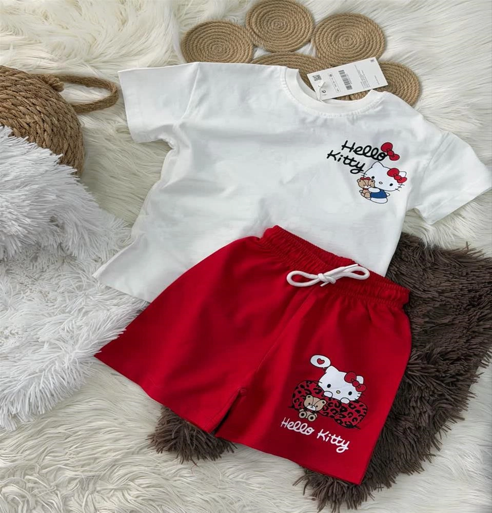 ست دوتیکه کیتی پاپیون دار ترک پشت و رو طرحدار کد 19007