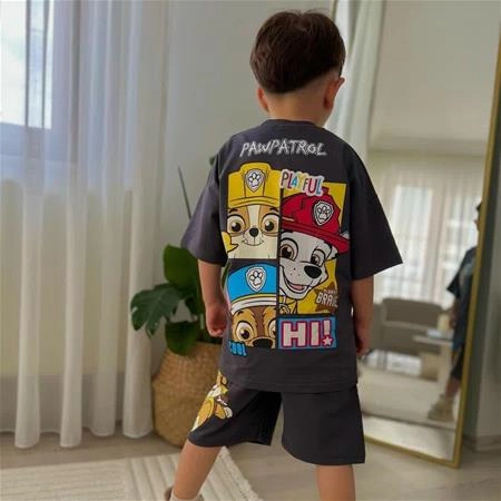 د.تیکه تیشرت شلوارک پاپاترول پشت و رو طرحدار ترک کد 6349