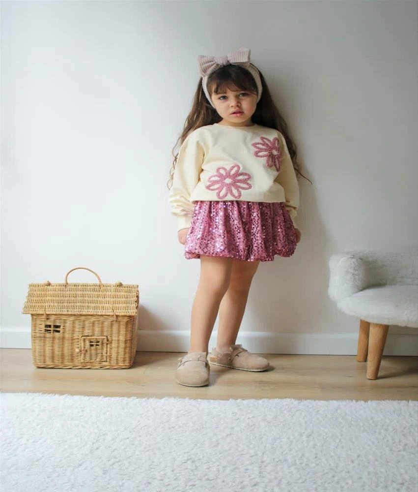 دوتیکه بلوز گل برجسته ودامن پولکی استردار ترک کد6362