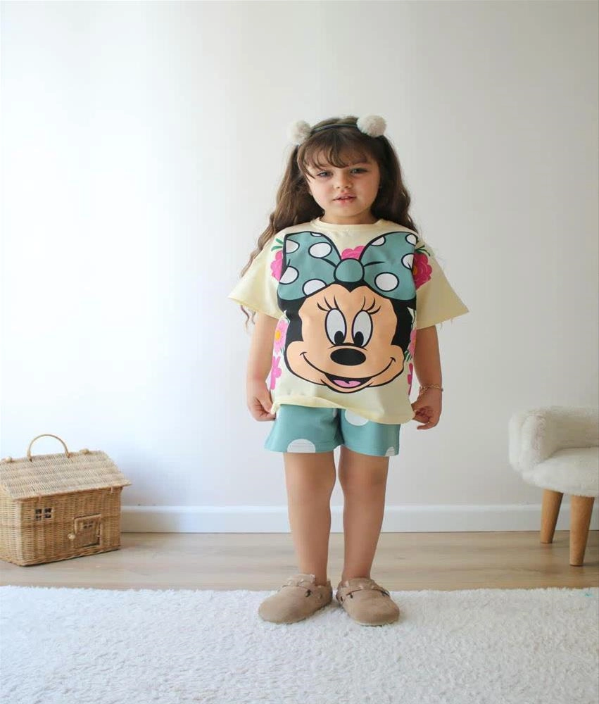 تکرار دوتیکه تیشرت شلوارک میکی گل 3تا10سال ترک کد 17976