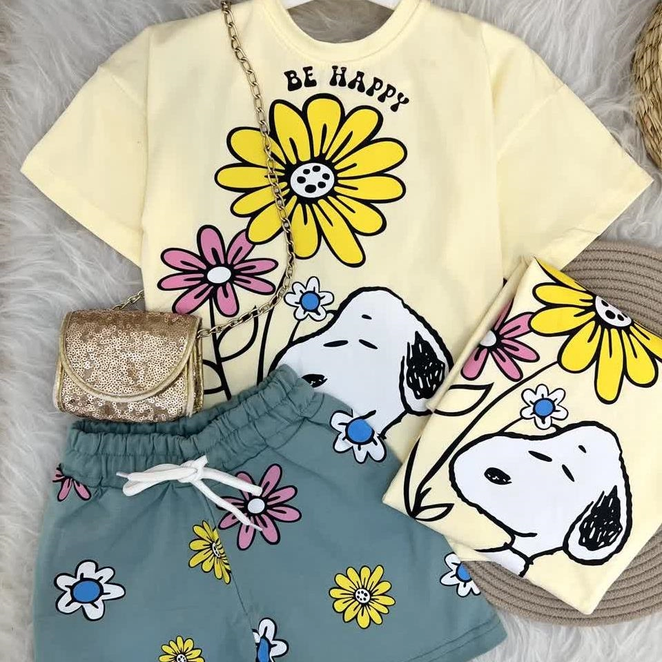 دو تیکه تیشرت شلوارک اسنوپی گل ترک کد 17980