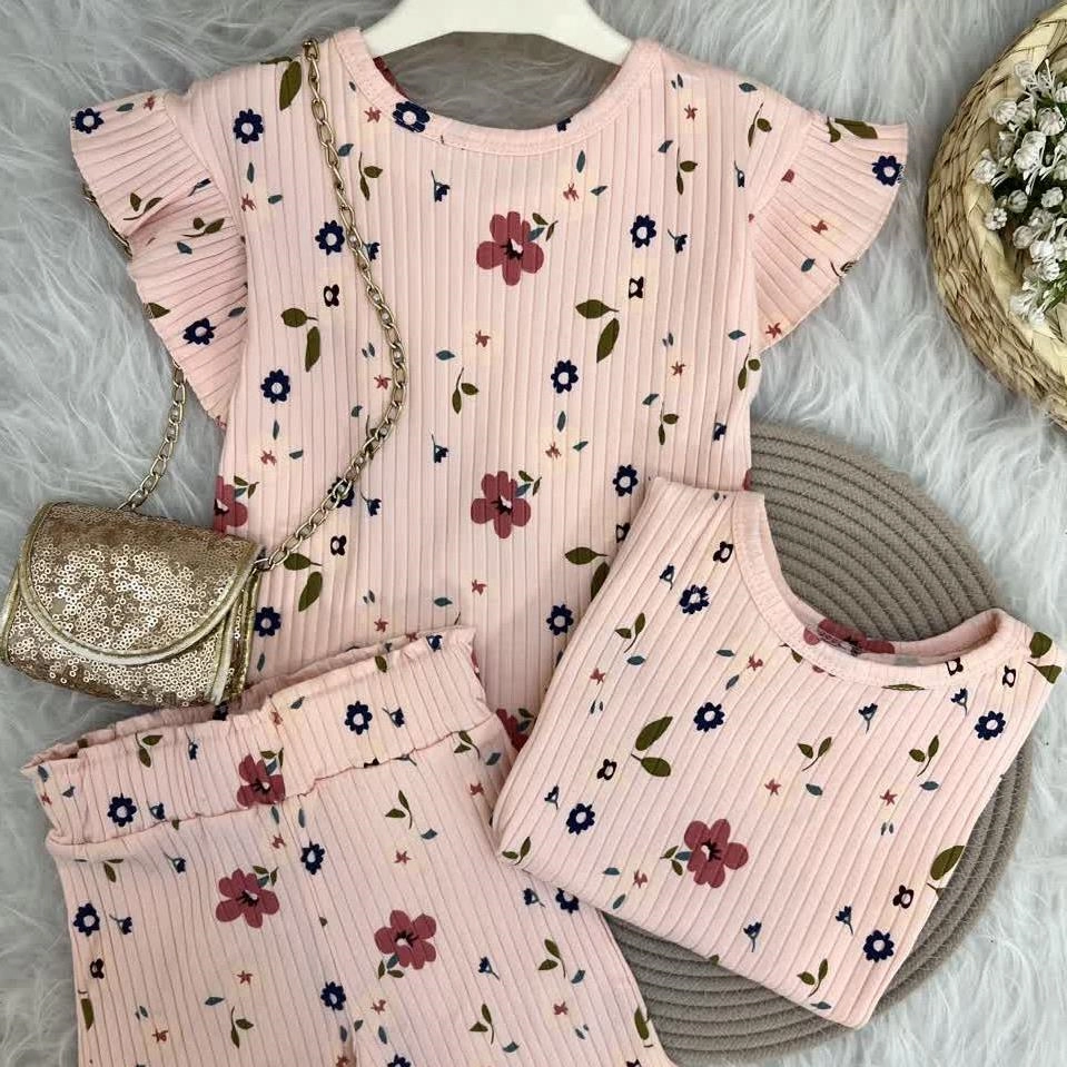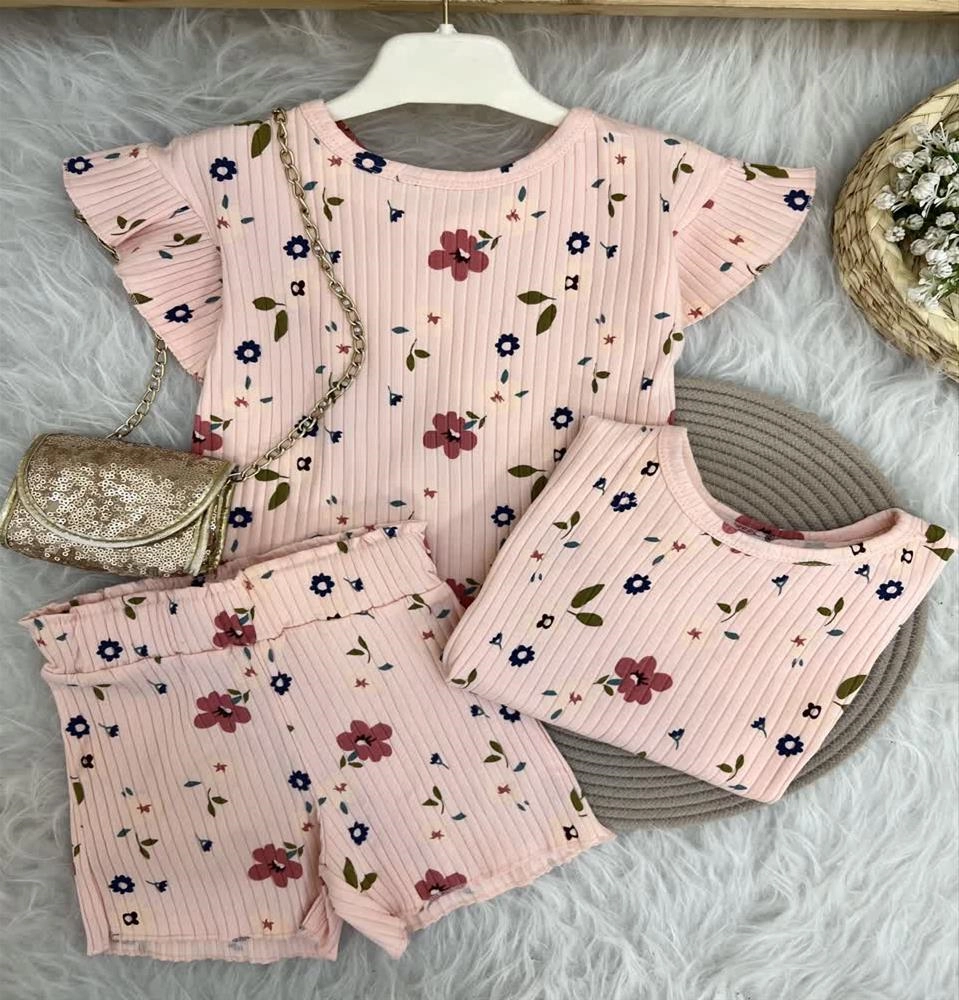 دوتیکه تیشرت شلوارک ریلی گلدار ترک3تا10سال ترک کد 18086