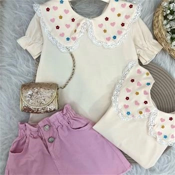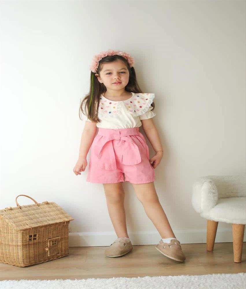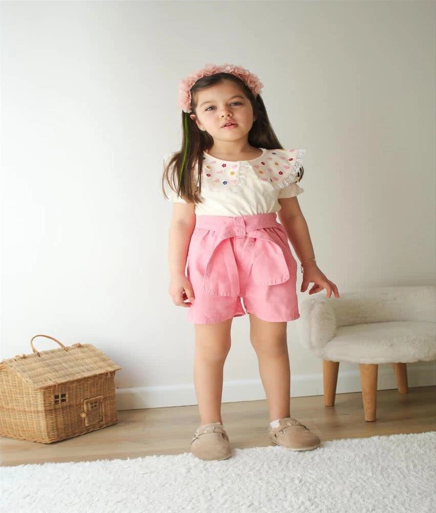 دوتیکه تیشرت یقه قلب و شلوارک لی 3تا10سال ترک کد 18230