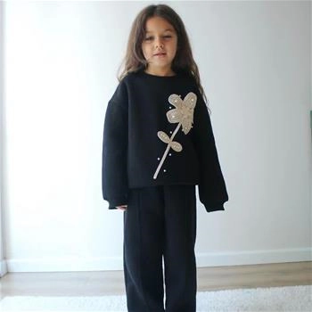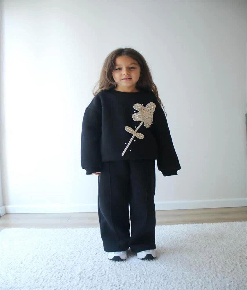 ست دو تیکه کرکدار دورس شلوار گل برجسته مشکی ترک کد 18441