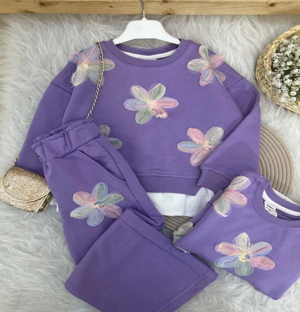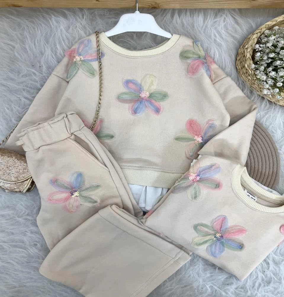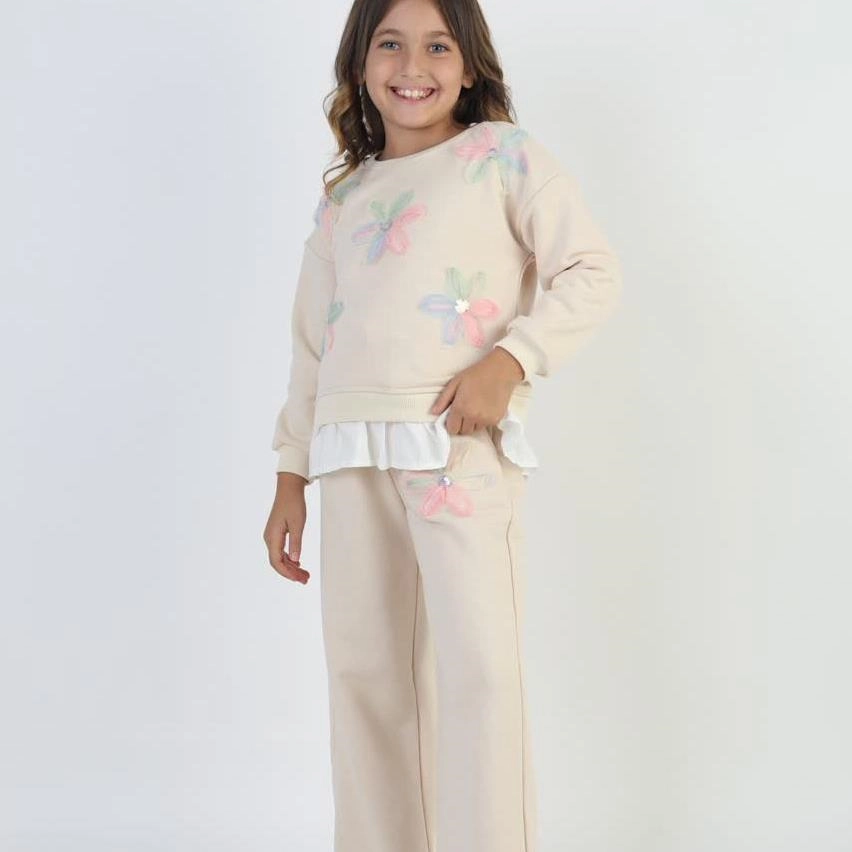 ست دو تیکه دورس شلوار سه نخ گل برجسته 3-12سال ترک کد 18632
