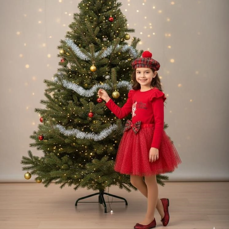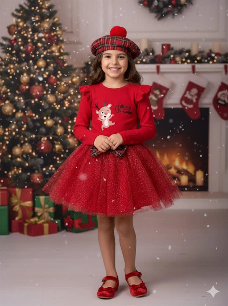 ست سه تیکه دورس دامن و کلاه کریسمسی ترک کد 18745