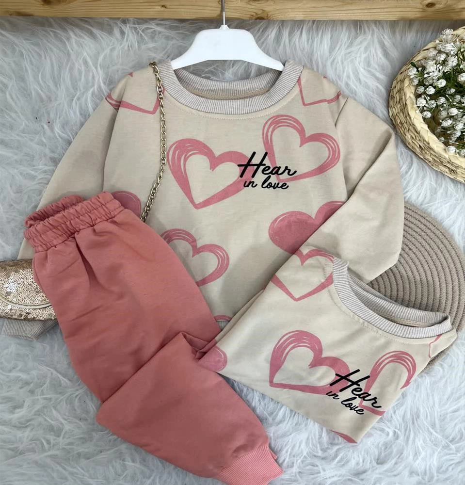 ست دوتیکه دو نخ دورس شلوار طرح قلب ترک کد 18820