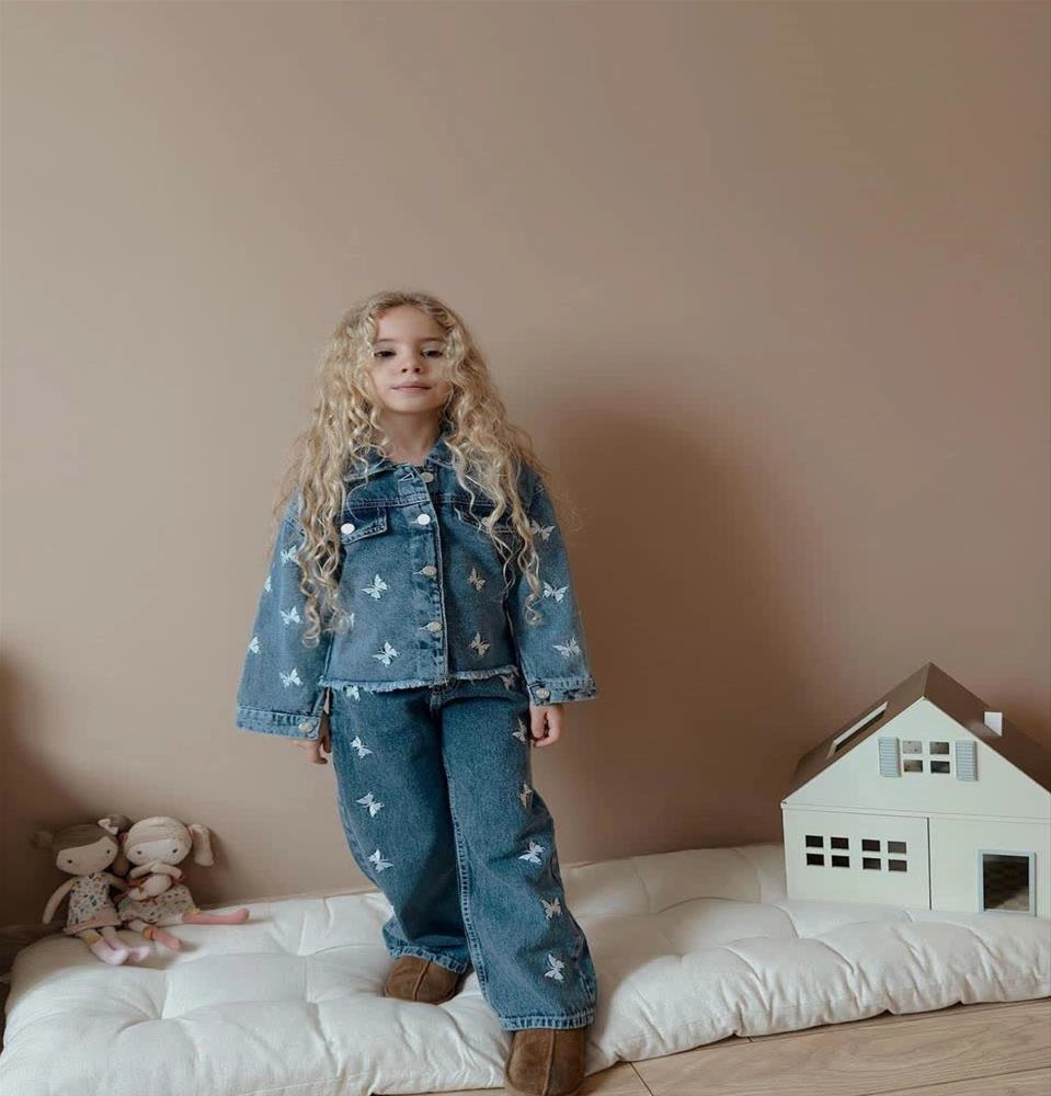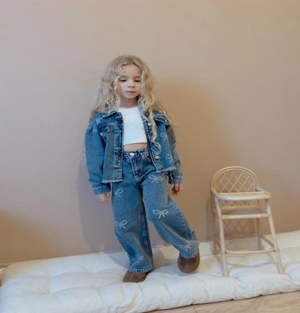 ست دو تیکه کت و شلوار جین پاپیون و پروانه ترک کد 18826