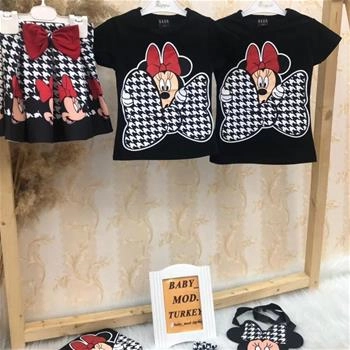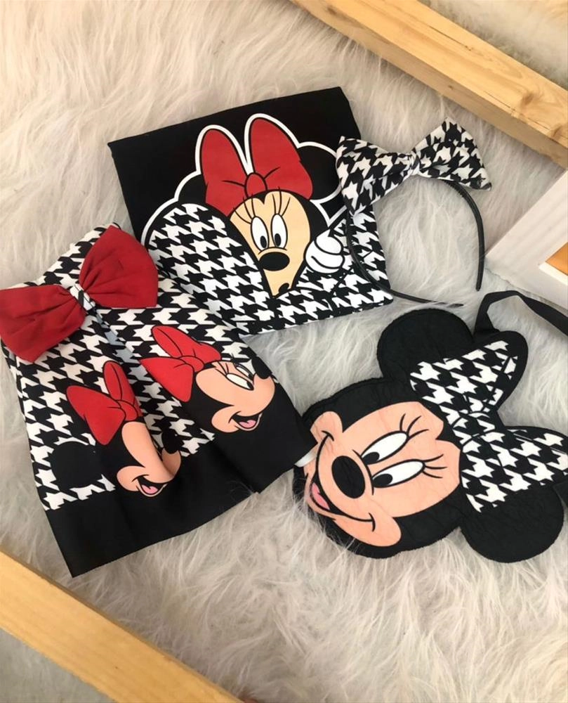 چهارتیکه بلوز و دامن کرپ و کیف و تل میکی ترک 2-3سال