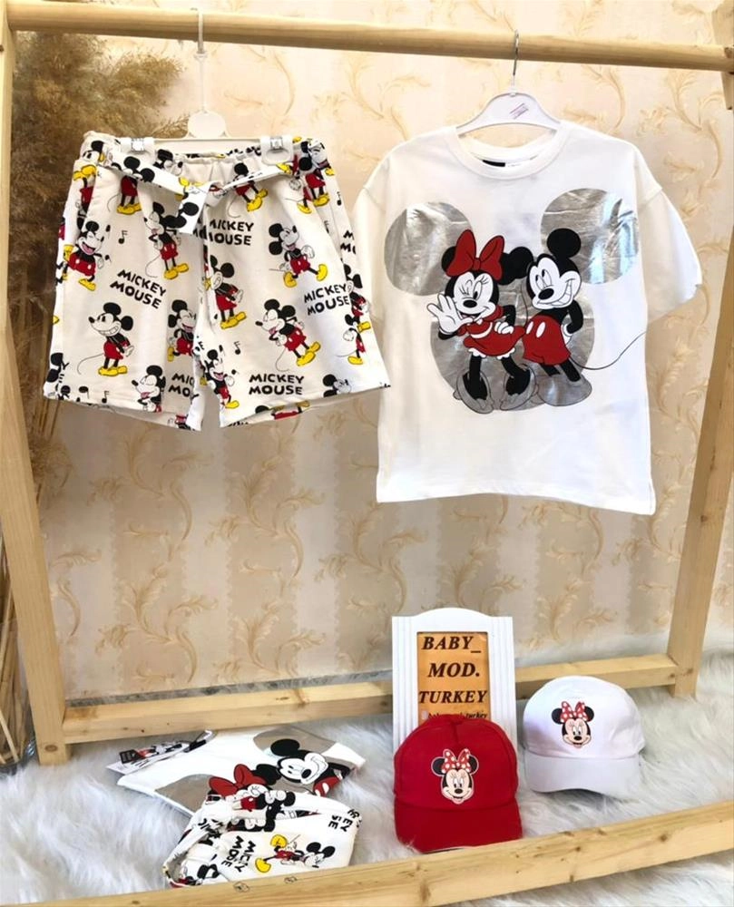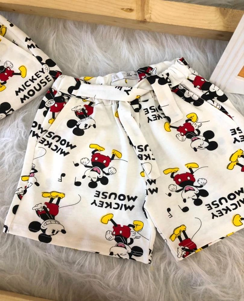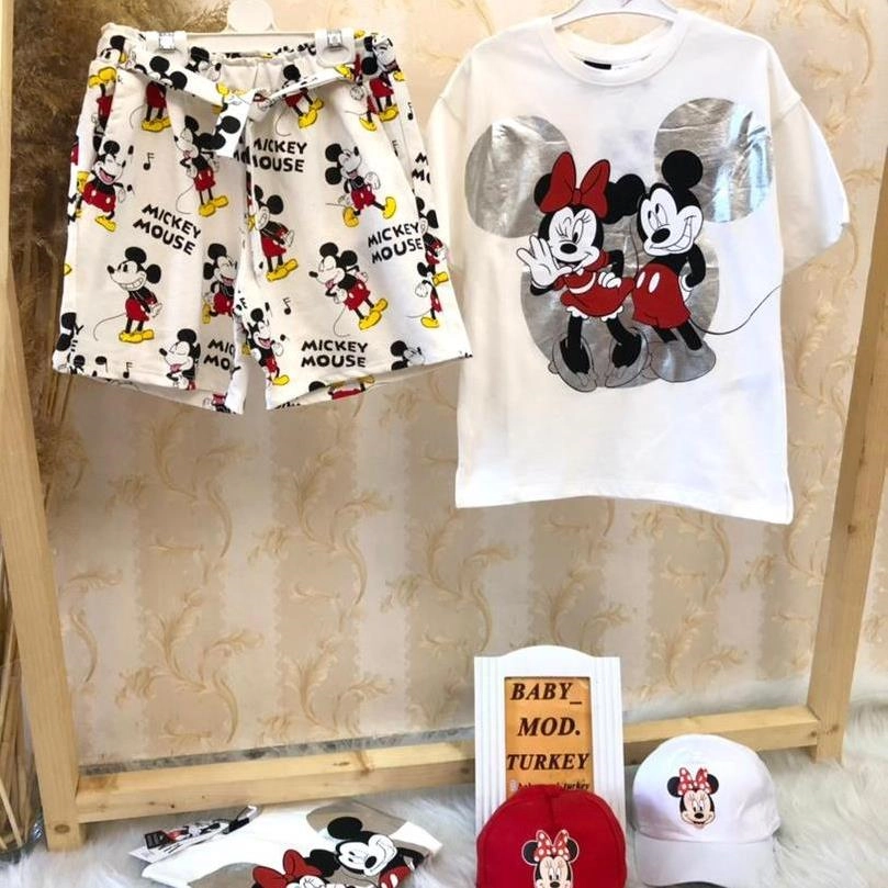 تیشرت میکی و شلوارک میکی مارک زارا و کلاه نقابدار دخترانه ترک کد 3064