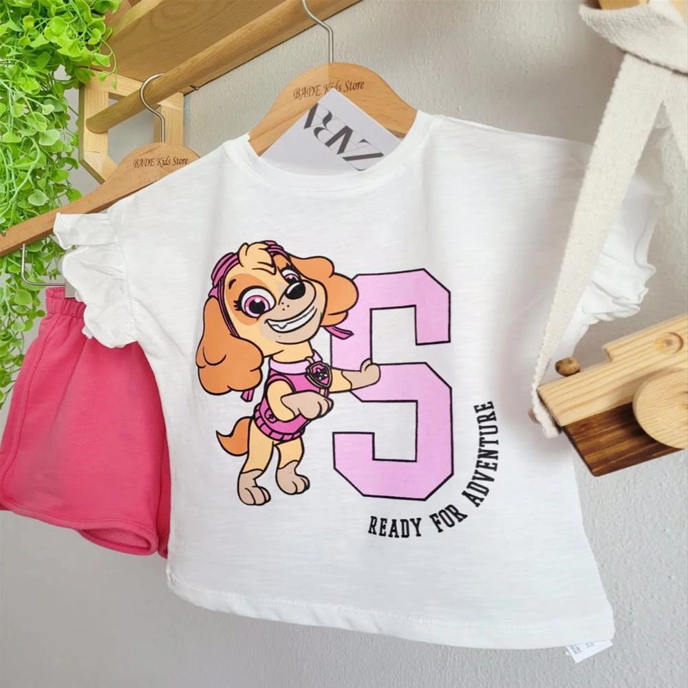 دو تیکه تیشرت شلوارک pawمارک زارا دخترانه ترک کد 3071