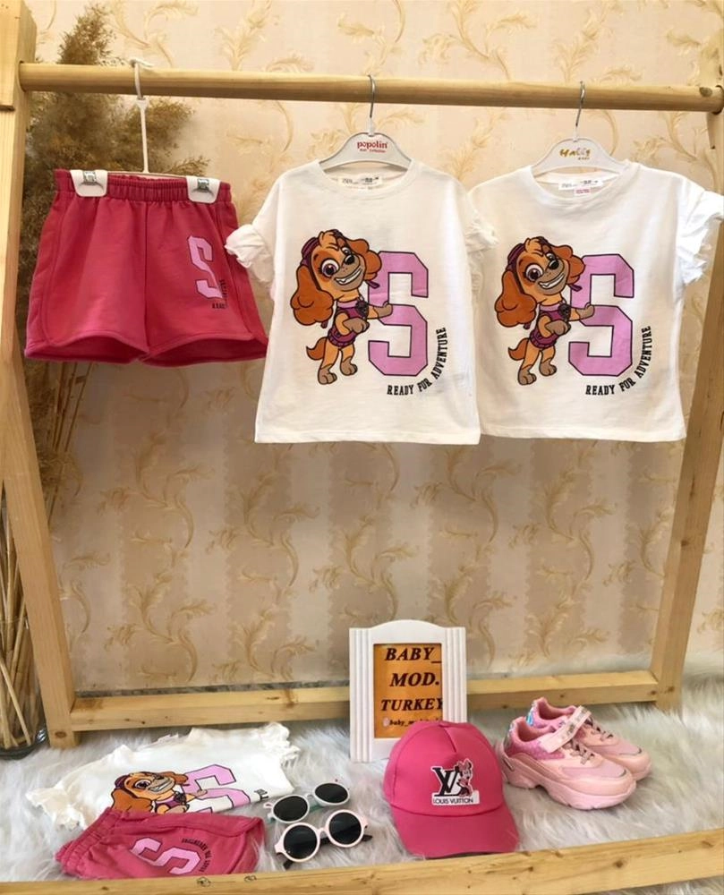 تیشرت شلوارک pawمارک زارا و کلاه نقابدار و عینک دخترانه ترک کد 3073