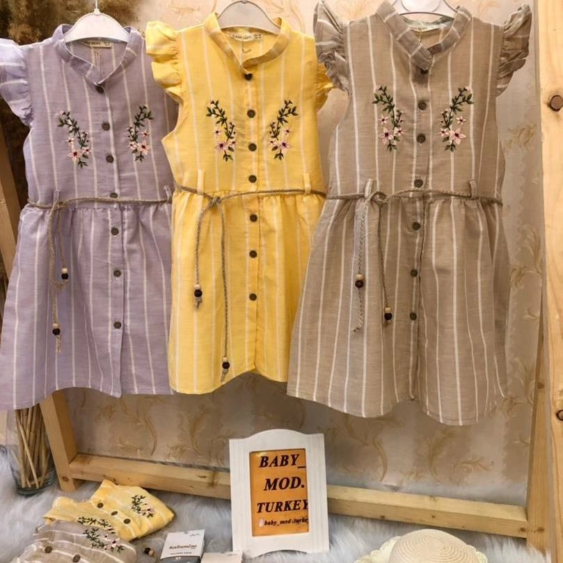 پیراهن راه راه گلدار در سه رنگ طرح گل و جوراب شلواری دخترانه ترک کد 3095