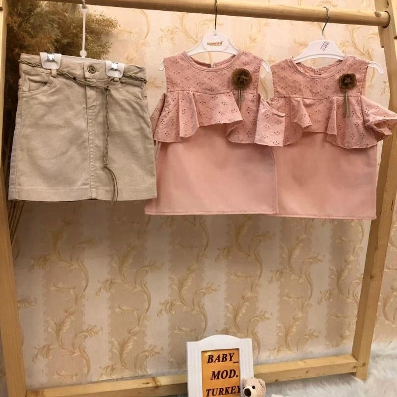 دوتیکه تاپ خامه دوزی و دامن دخترانه ترکلطفا قبل سفارش اندازه ها به سانت چک شود