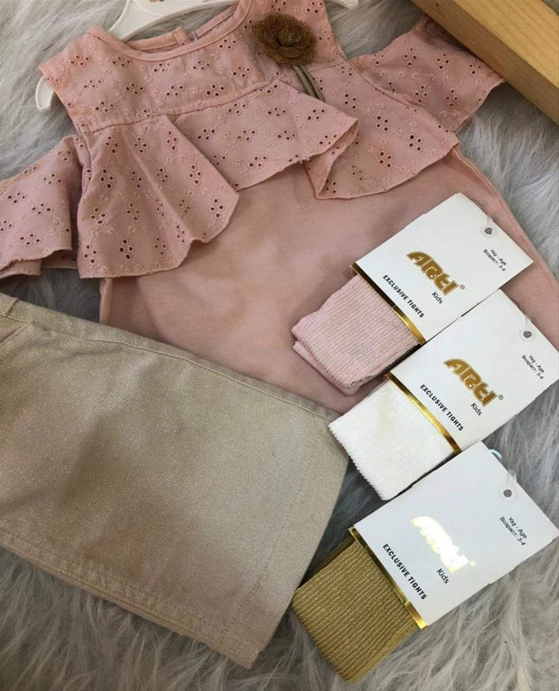 تاپ خامه دوزی و دامن و جوراب شلواری و عینک دخترانه ترک کد 3137