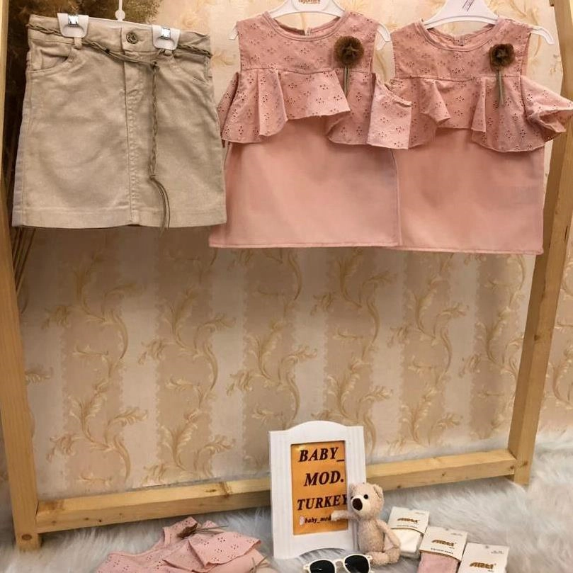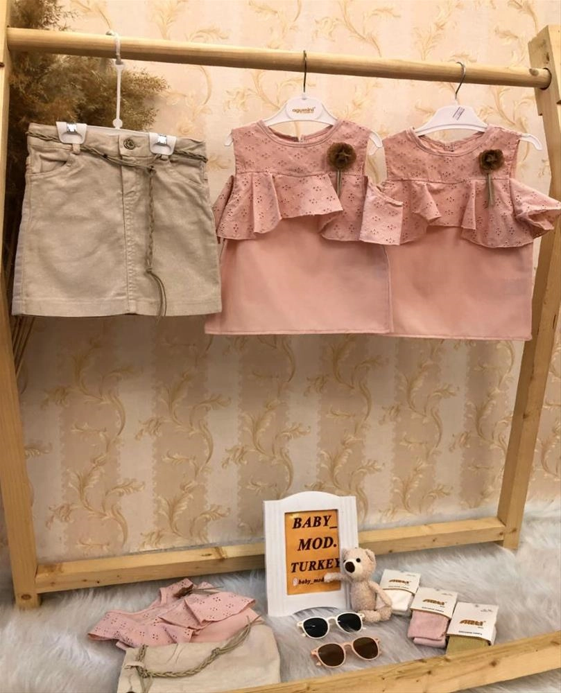 دوتیکه تاپ خامه دوزی و دامن دخترانه ترک کد 2974