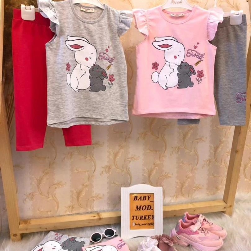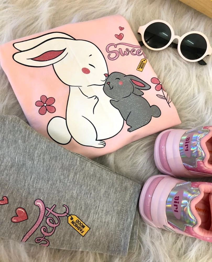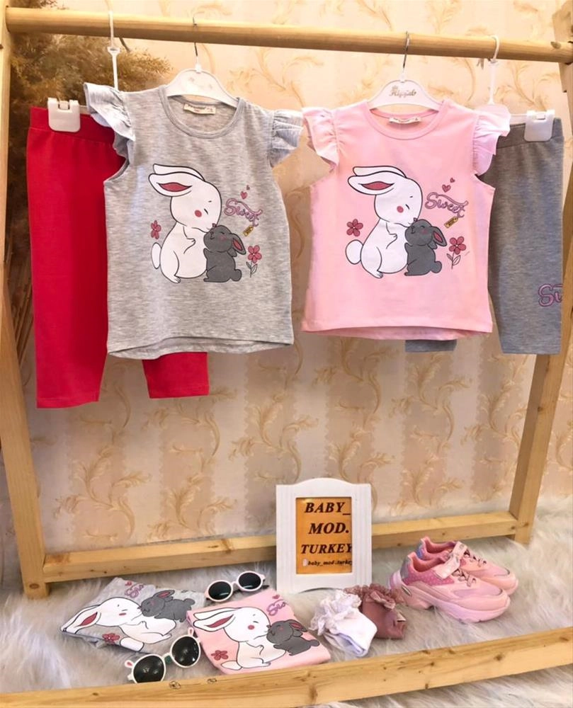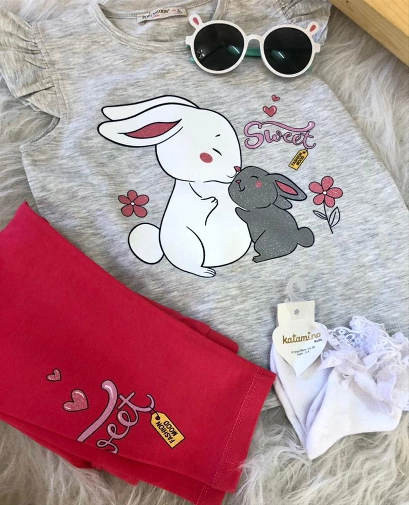 تیشرت شلوارک طرح خرگوش و جوراب و عینک دخترانه ترک کد 3139