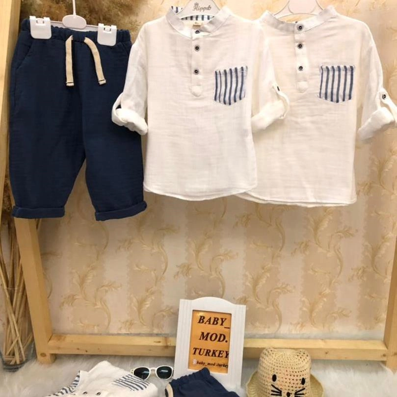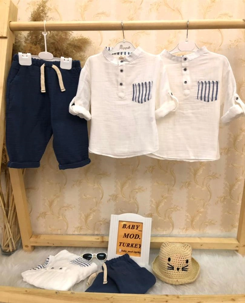 دو تیکه پیراهن شلوار الیاف طبیعی پسرانه ترک کد 3140