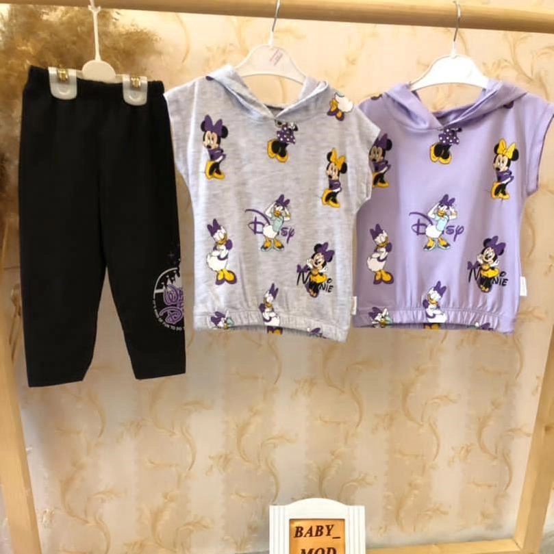 دوتیکه تیشرت کلاهدار و شلوارک دخترانه میکی ترکدوسال