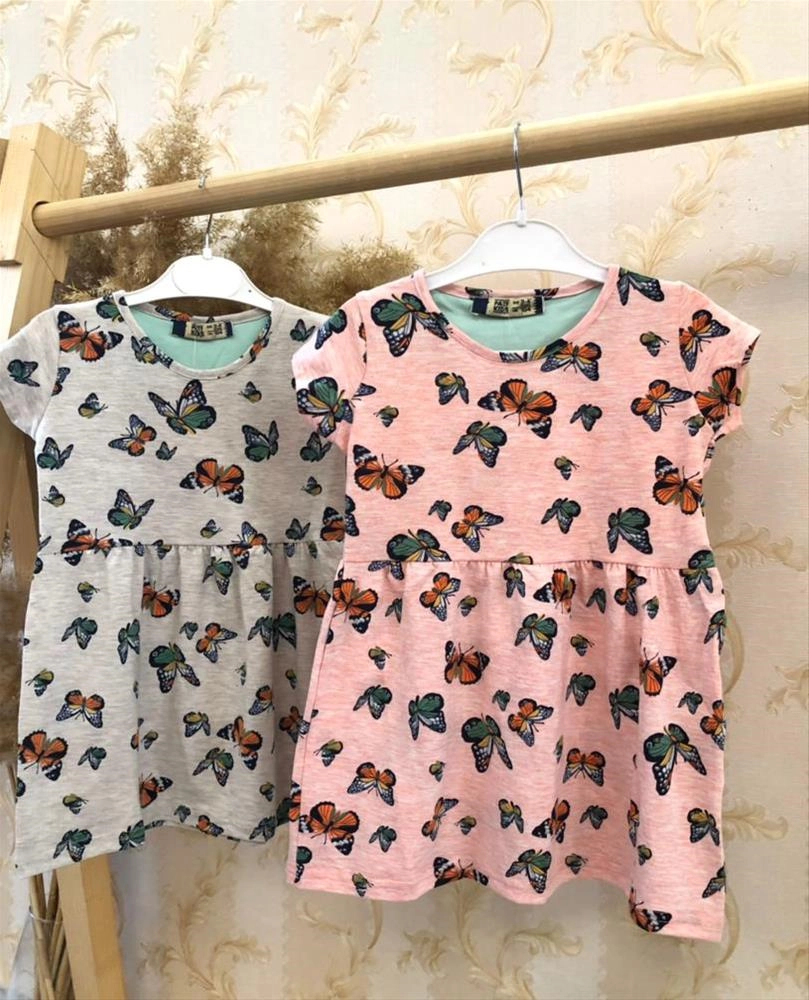 پیراهن نخ پنبه طرح پروانه دخترانه ترکلطفا قبل سفارش اندازه ها به سانت چک شود