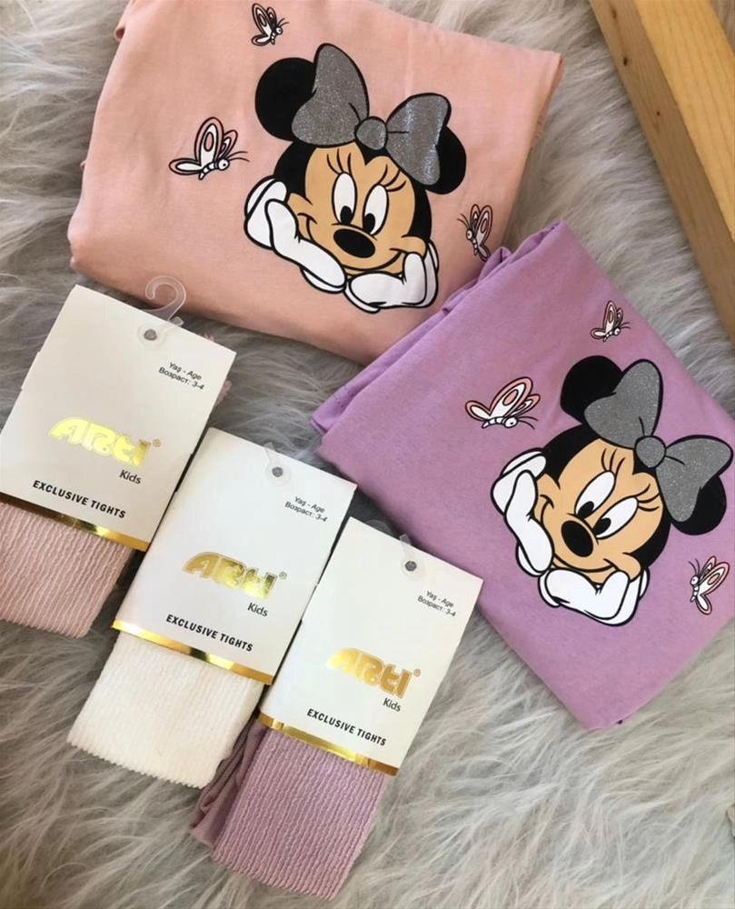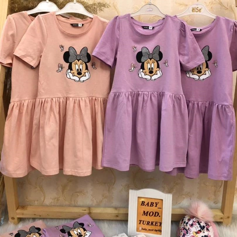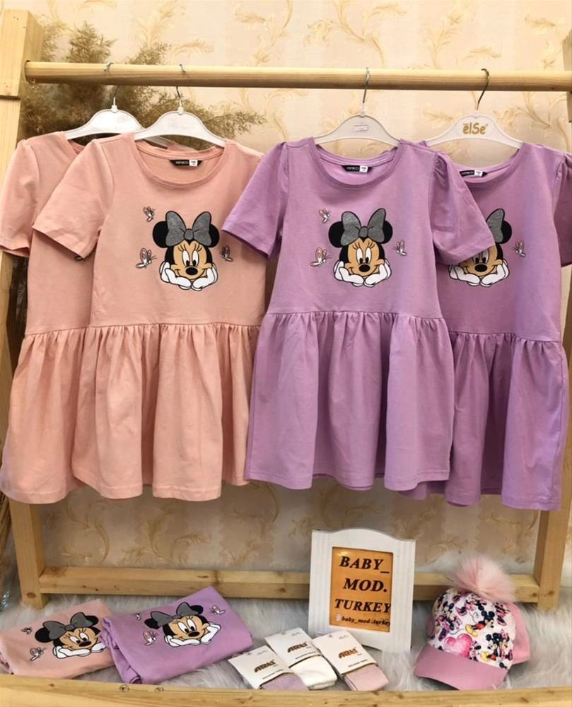 پیراهن میکی نخ پنبه در دو رنگ دخترانه ترک کد 3241